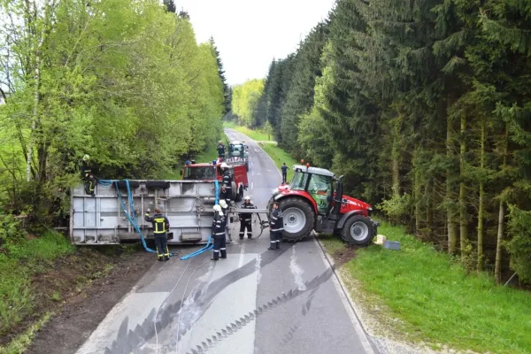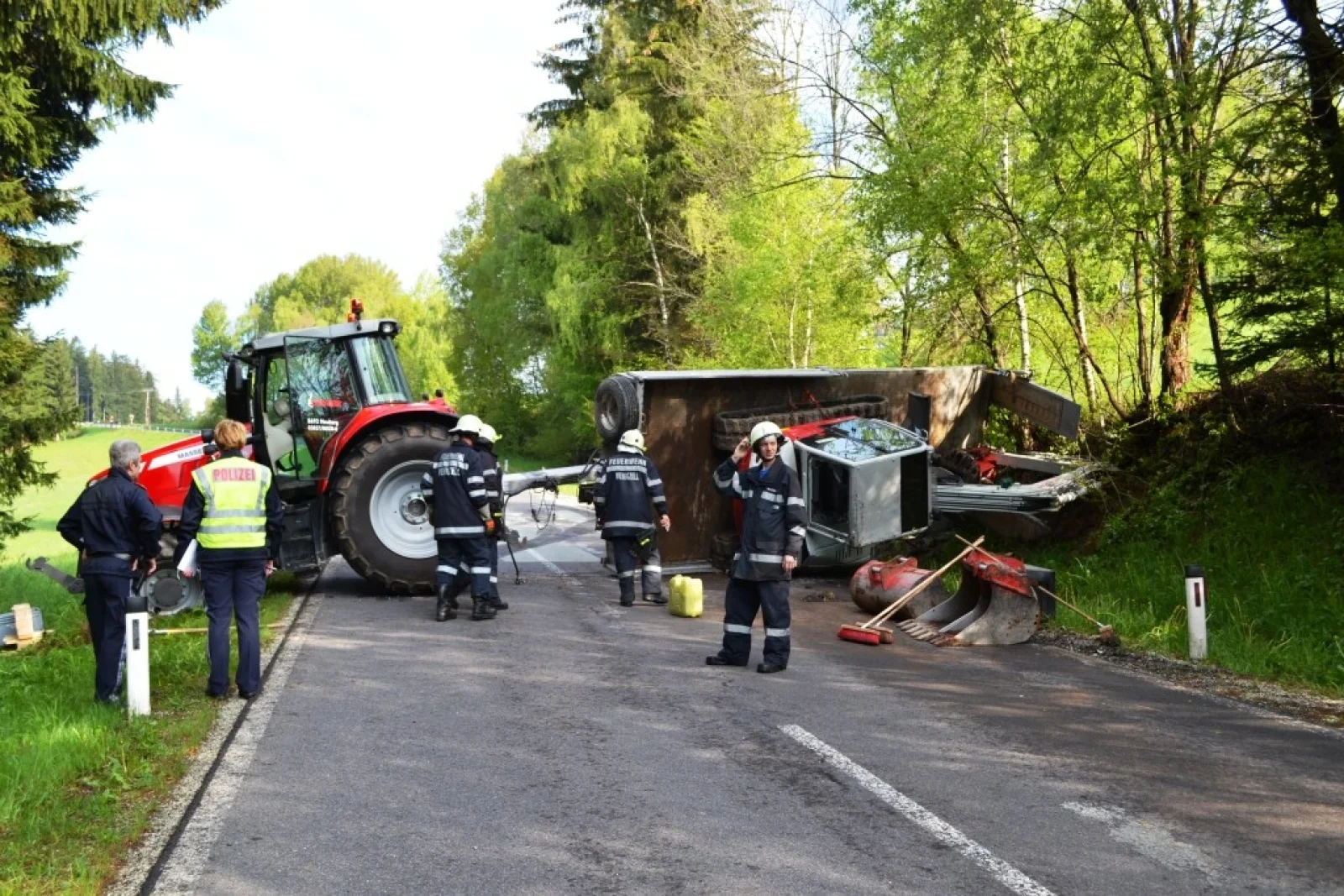Nachdem der Anhänger aufgestellt war, konnte der Traktor seine Fahrt fortsetzen. Nach 4,5 Stunden konnte die Feuerwehr Wenigzell ihre Einsatzbereitschaft wieder herstellen.