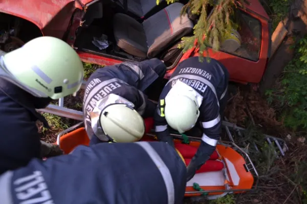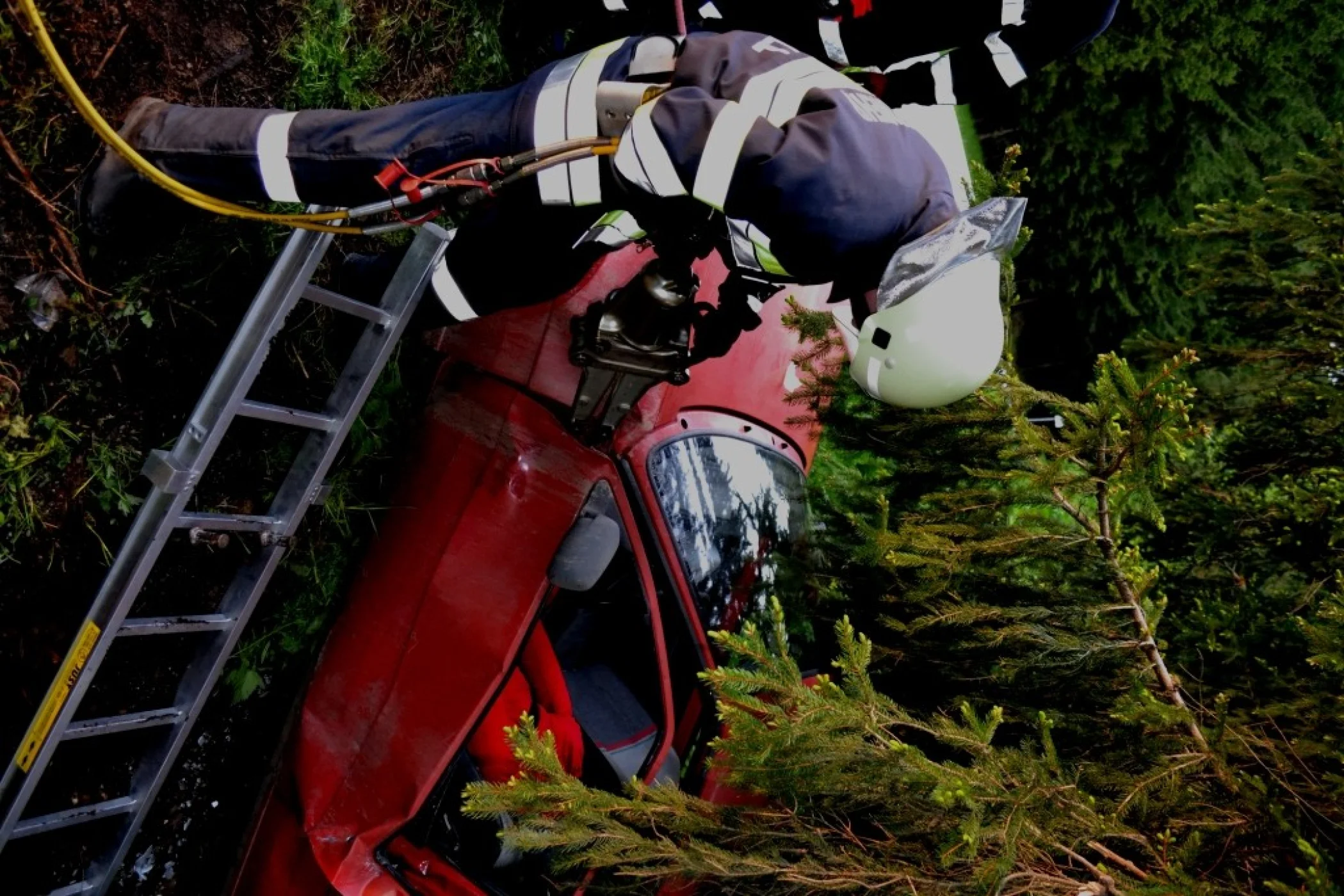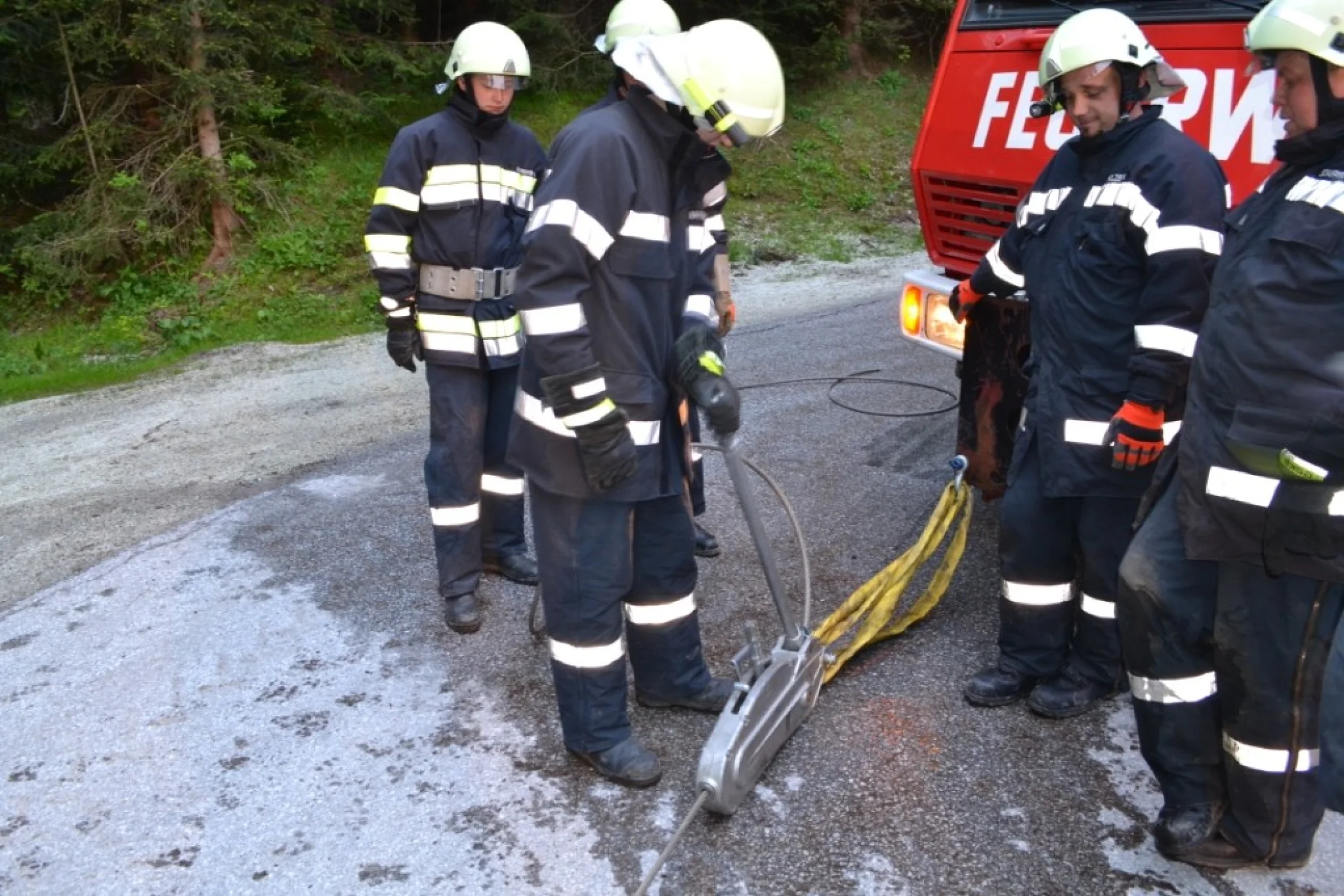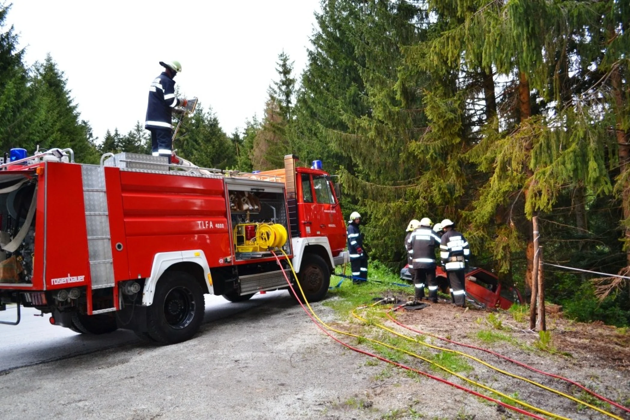 Ein PKW kam aus ungeklärter Ursache in der Kurve von der Fahrbahn ab und stürzte mit dem Heck eine Böschung hinunter, der Lenker welcher im PKW saß war bewusstlos und eingeklemmt, das Fahrzeug drohte die Böschung hinunter zu stürzen. Aufgaben der FF Wenigzell waren: