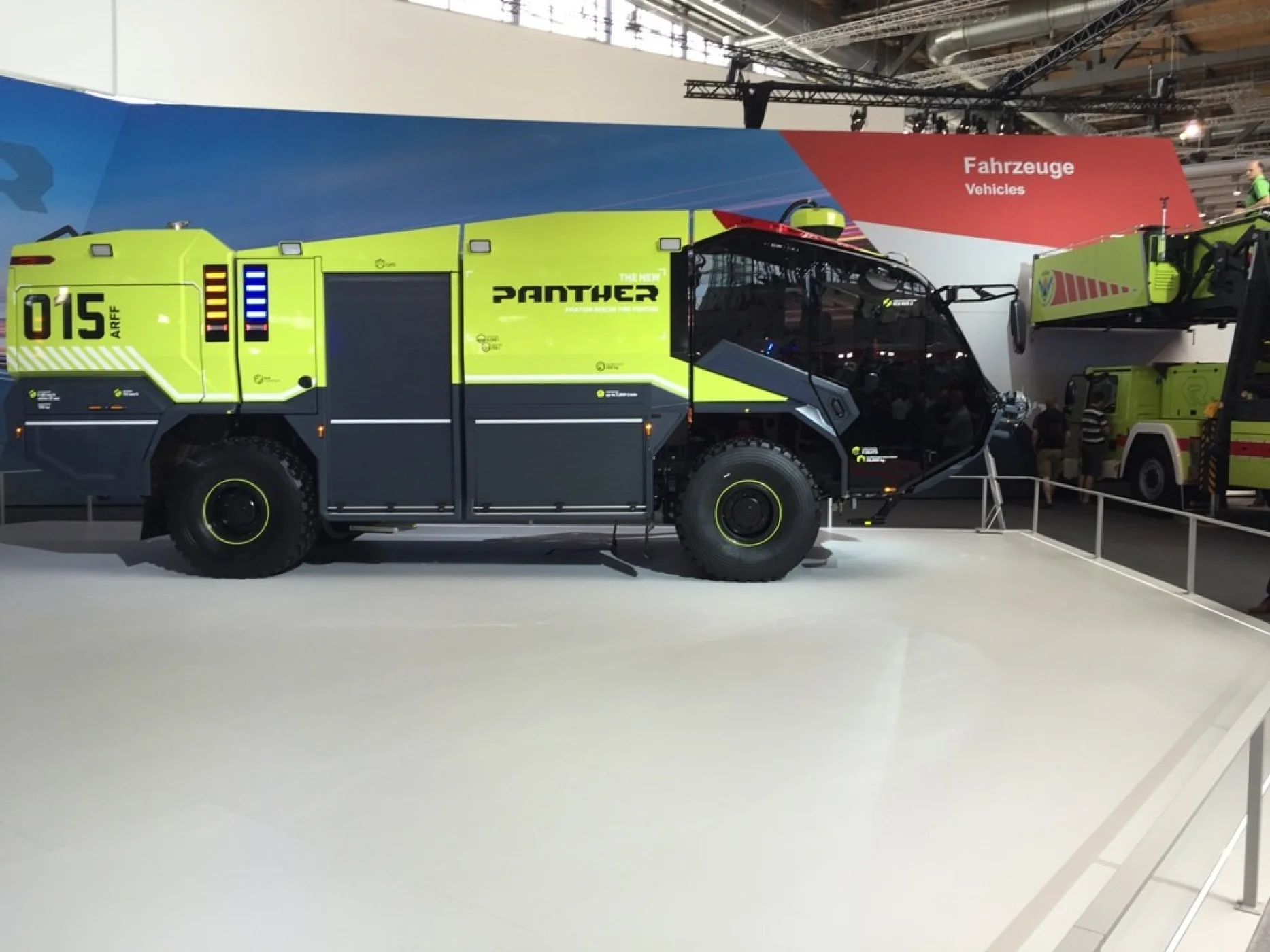 Angefangen von Flughafenlöschfahrzeugen über dem Rosenbauer Buffalo mit über 30.000 Liter Löschwasserinhalt bis hin zu Drehleitern bzw. Hubsteigern mit über 100 Meter Höhe ließ die Ausstellung keine Wünsche offen. Durch die vielen Besichtigungen der ausgestellten Fahrzeugen, konnten wir uns die ein oder andere Idee auch für unser neues Einsatzfahrzeug abschauen.