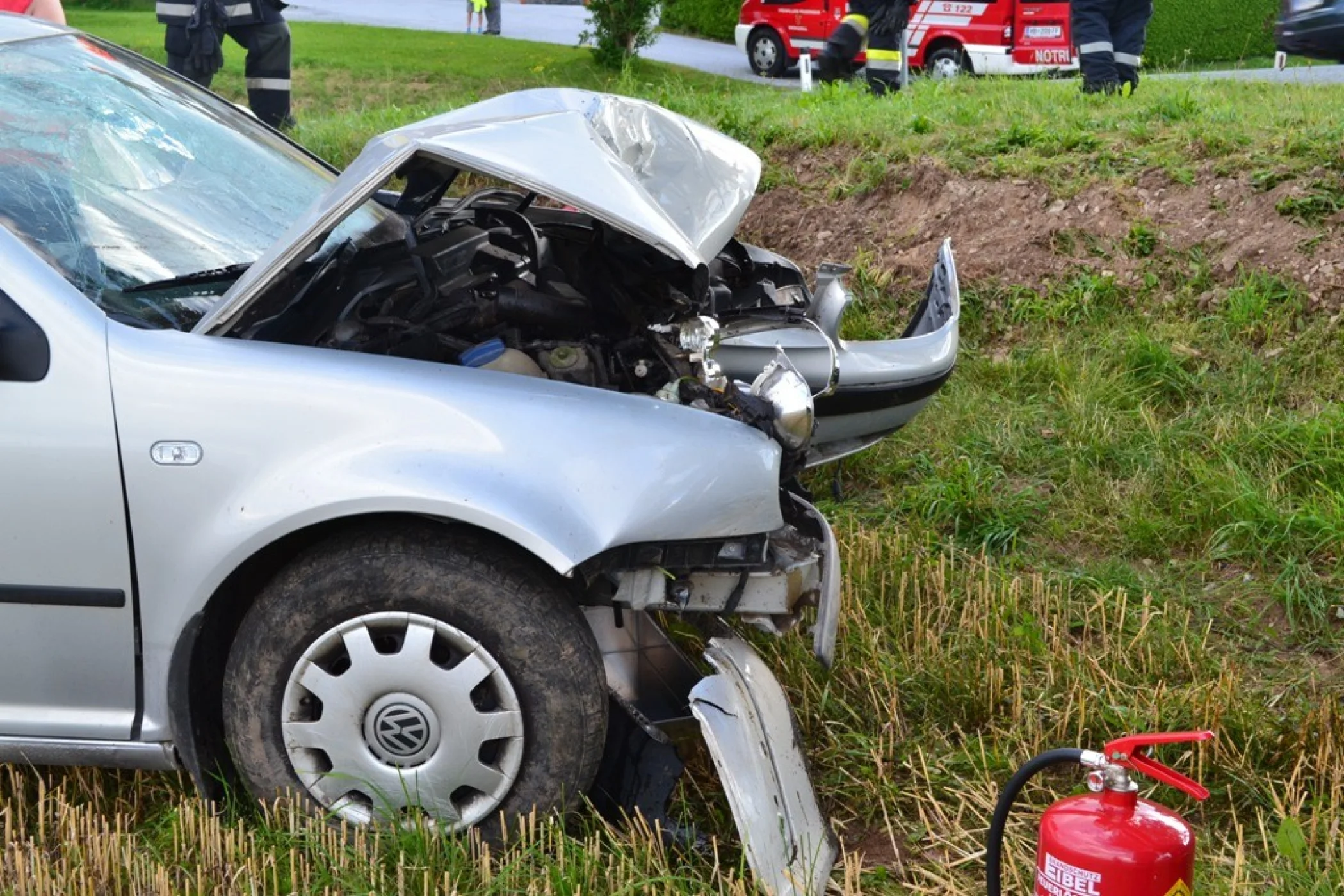 Als wir an der Einsatzstelle ankamen, war bereits die First Responder Eva Sommersguter am Unfallort, welche die Verletze versorgte und von unseren Feuerwehrsanitätern unterstützt wurde, die Rettung wurde bereits vom Ersthelfer alarmiert, von unserer Seite wurde ein Brandschutz aufgebaut und die Unfallstelle abgesichert. Nachdem die Polizei den Unfall aufgenommen hatte und die Verletze Person mit der Rettung abtransportiert wurde, wurde das Fahrzeug mittels Abschleppdienst abtransportiert.