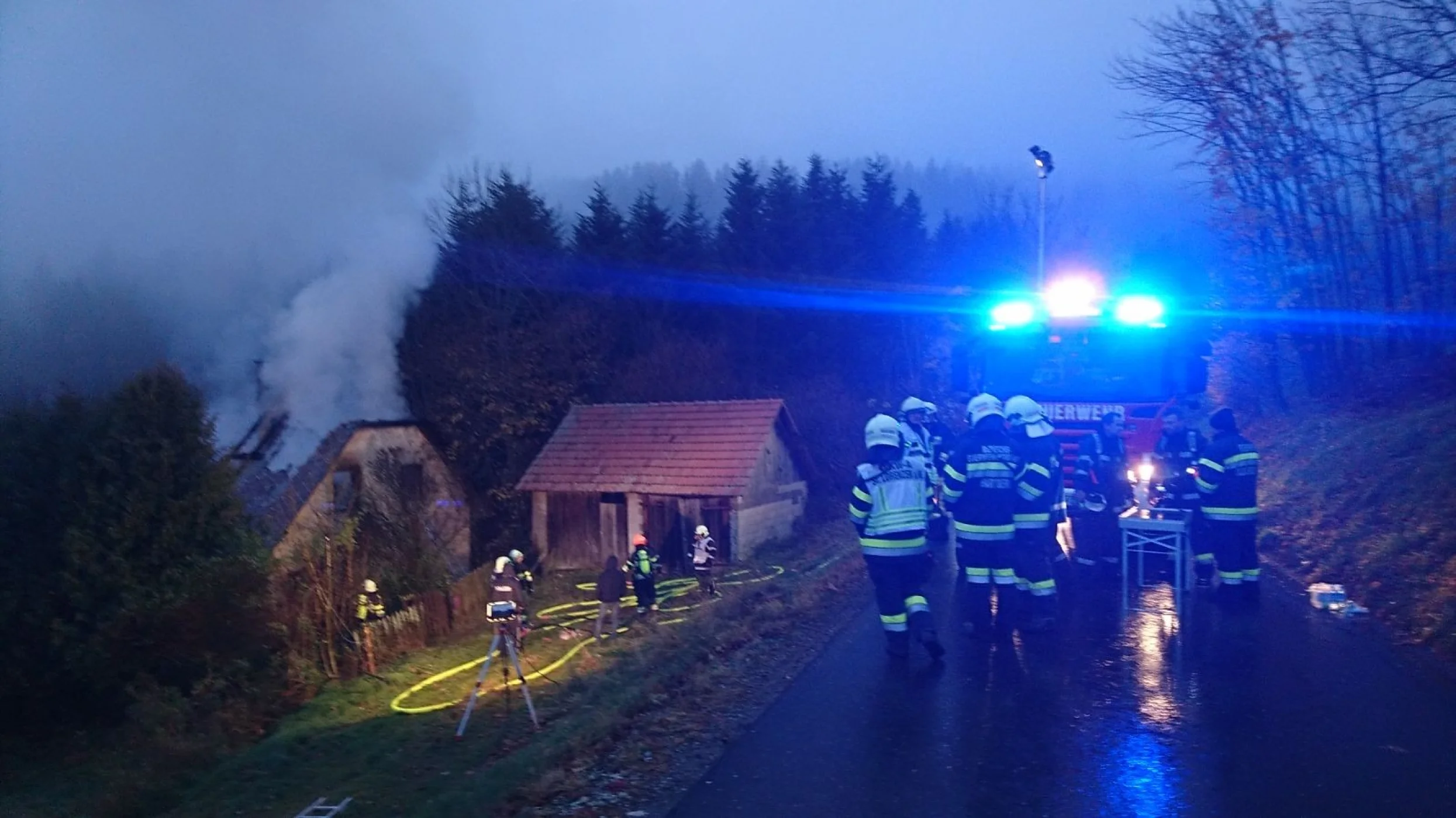 Am Mittwoch dem 08.11.2017 wurden wir bereits um 05:05 Uhr mittels Sirenenalarm zu einem Wohnhausbrand nach Waldbach – Ortsteil Breitenbrunn – alarmiert. Sofort rückten wir mit RLFA-2000/100 und LFA mit insgesamt 15 Mann zur Einsatzstelle aus. Bereits im Alarmstichwort war angegeben, dass schwerer Atemschutz aufgenommen werden sollte, was auch während der Anfahrt durchgeführt wurde.