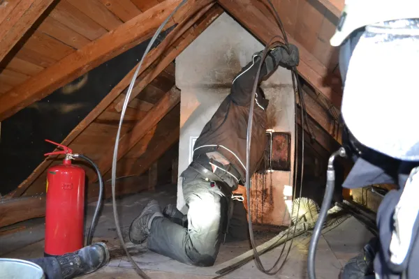 Noch wärend der Anfahrt wurde Atemschutz aufgenommen. Nach der Erstkontrolle mittels Wärmebildkamera stellte sich heraus, dass lediglich der Kamin vom Brand betroffen war. Nach kurzer Zeit traf auch ein Rauchfangkehrer am Einsatzort ein. Nach Rücksprache mit Ihm wurde der Kamin kontrolliert ausgebrannt und die Heizungsanlage ausgeräumt.