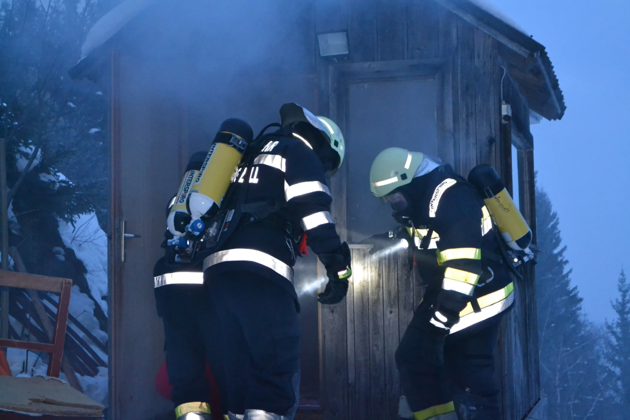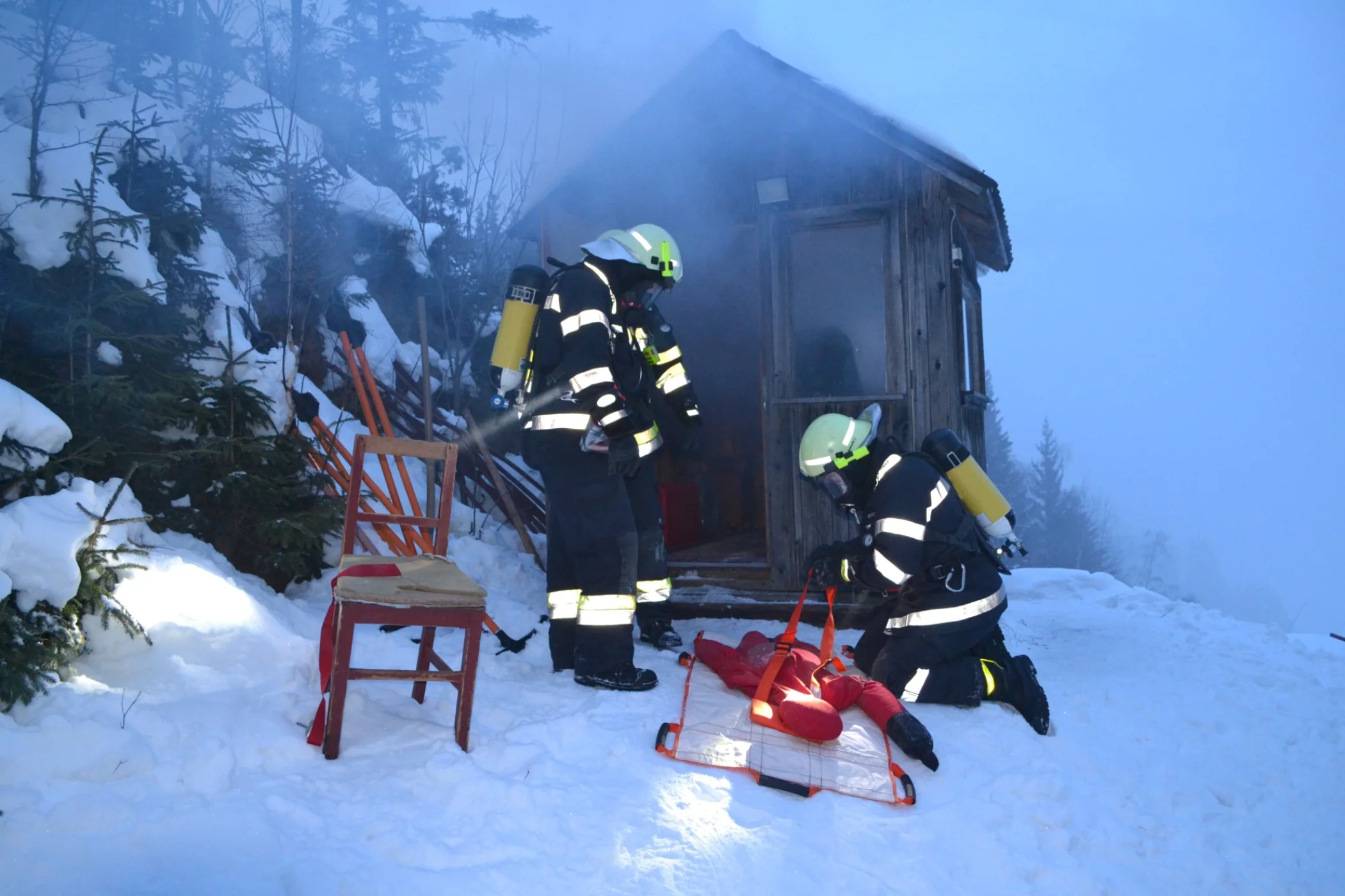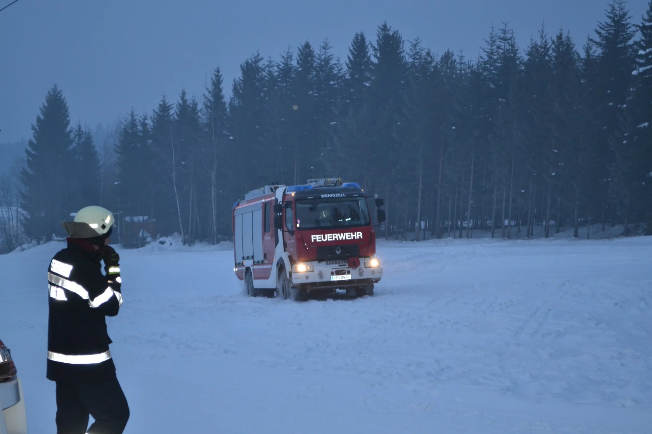 Aufgrund der Schneemengen konnten wir nur den halben Weg der Piste mit den Fahrzeugen bewältigen und mussten den Rest des Weges zum Brandobjekt zu Fuß vorrücken. Während der Atemschutztrupp die vermisste Person suchte, wurde eine Zubringleitung von einem Schneekanonenhydranten mit 3 B-Längen aufgebaut und mit dem Löschangriff begonnen. Nachdem die vermisste Person gerettet werden konnte und der Brand bekämpft war, wurde seitens des Einsatzleiters Brand Aus gegeben.
