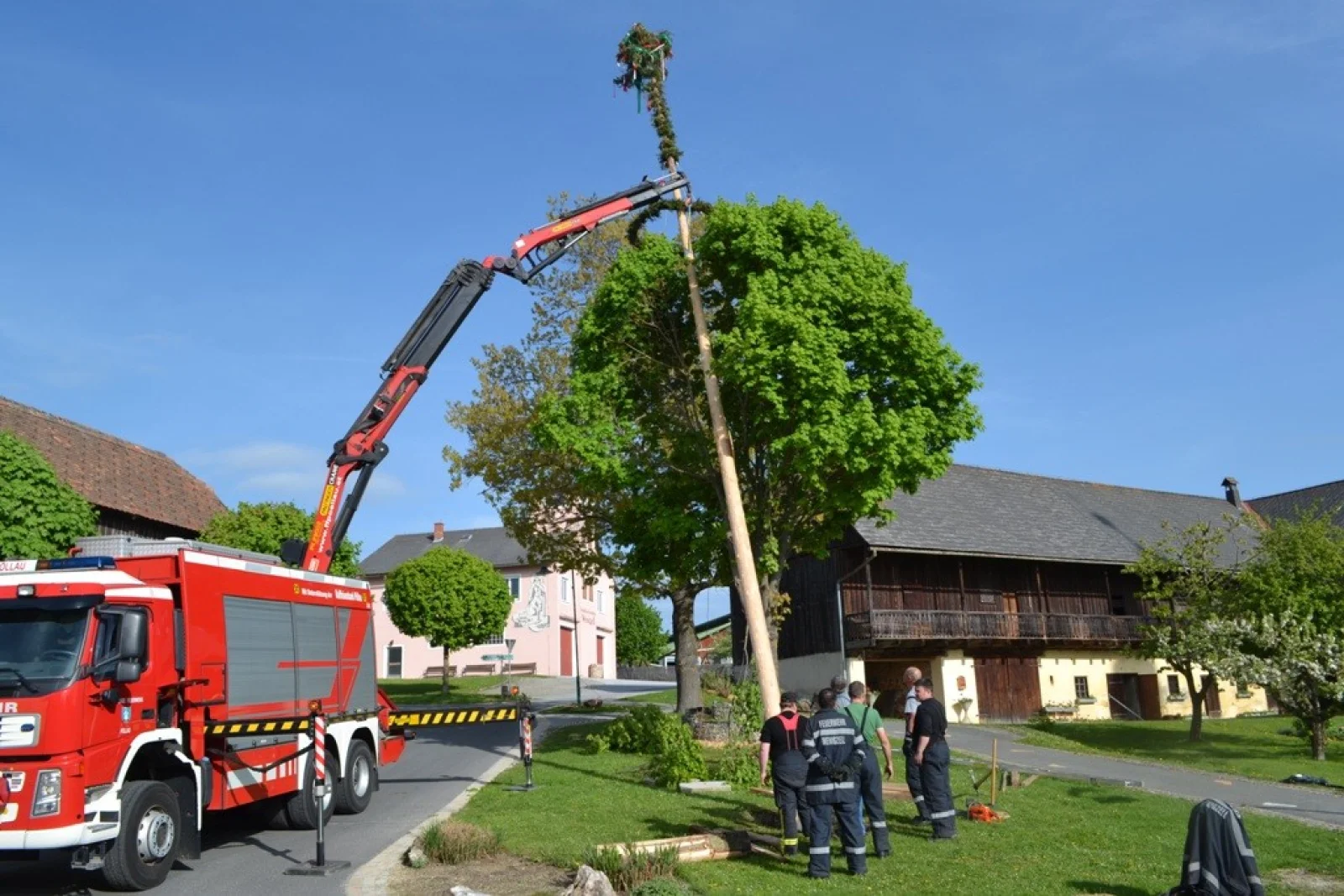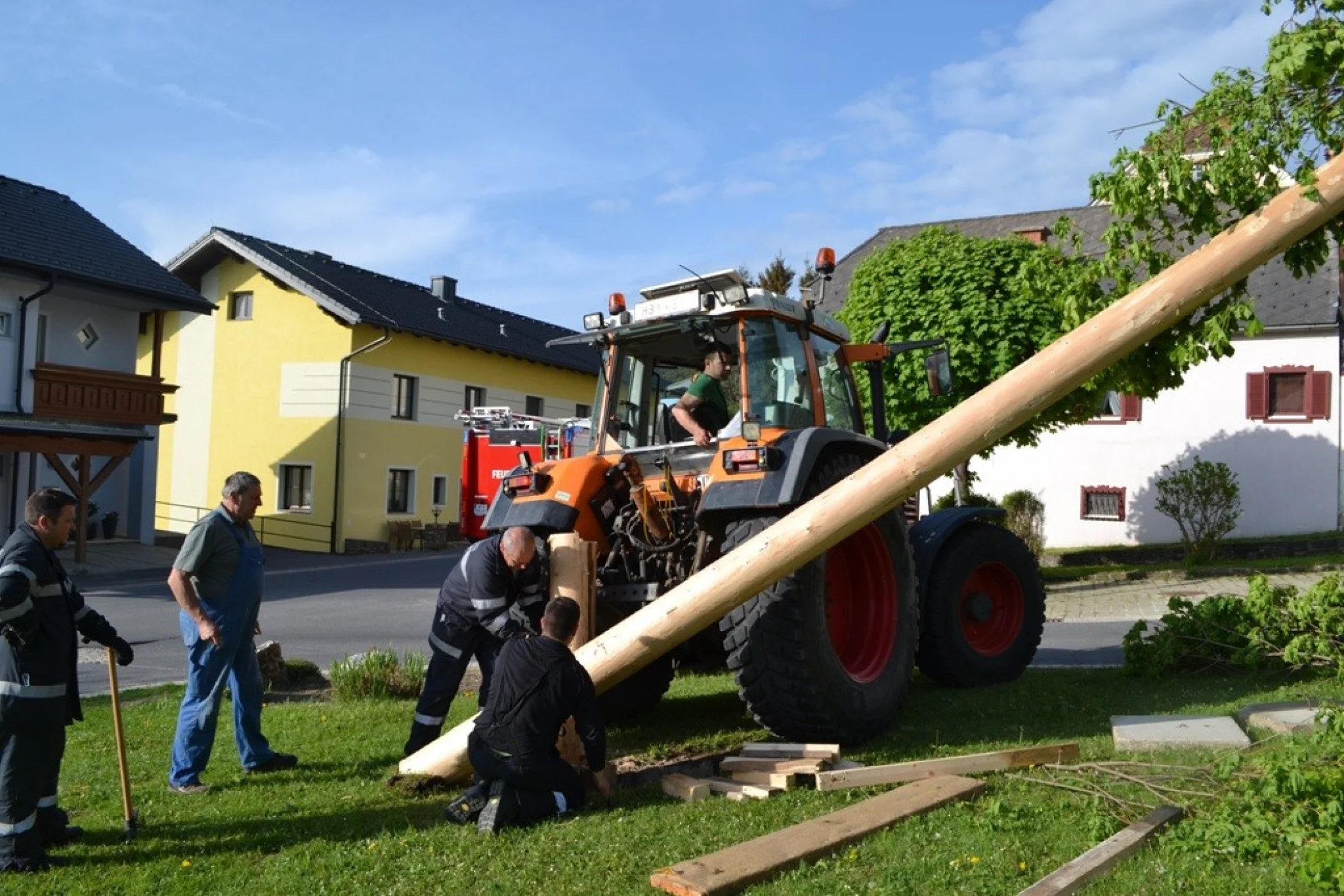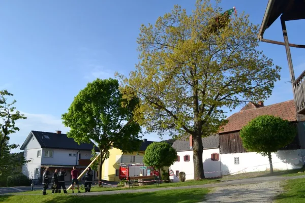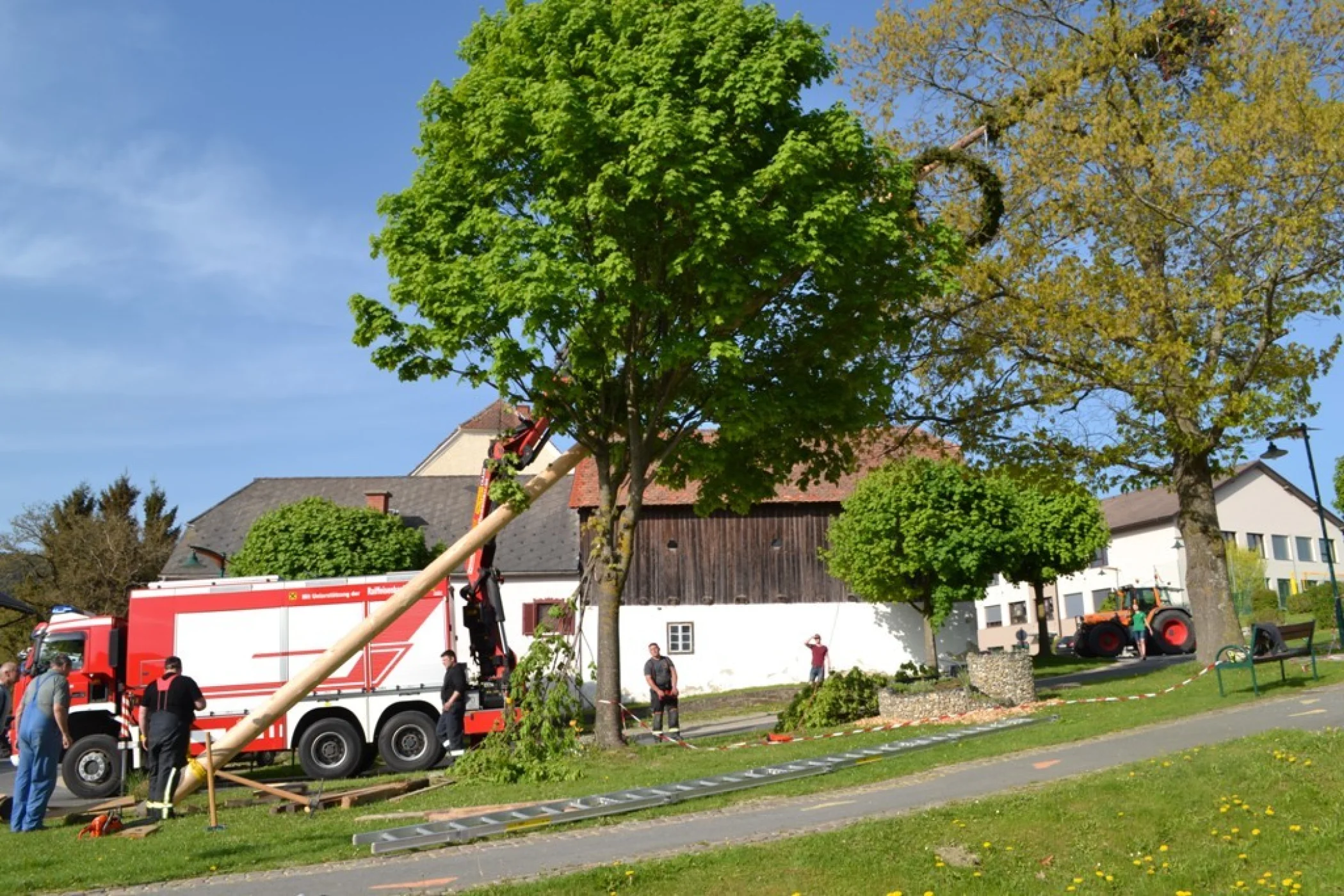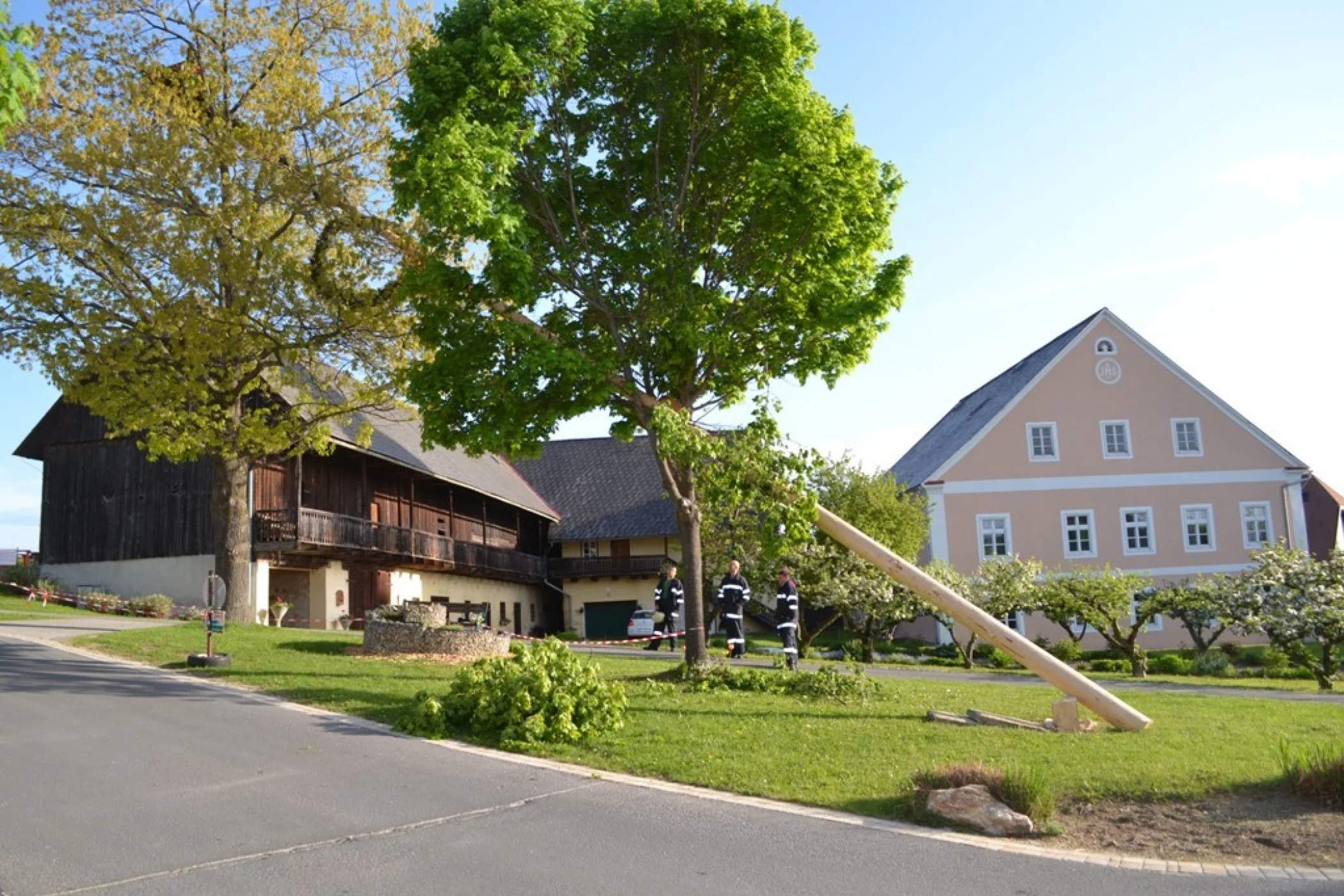 Am Mittwoch dem 02. Mai 2018 wurden wir gegen 07:15 Uhr mittels stiller Alarmierung zu einem Einsatz im Dorf alarmiert. Leider stellte es sich heraus das der Maibaum der Landjugend Wenigzell in der Nacht auf den 02. Mai durch bisher unbekannte Täter völlig unverantwortlich umgeschnitten wurde und sich auf zwei anderen Bäumen aufhängte.