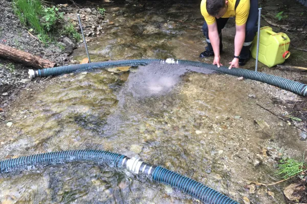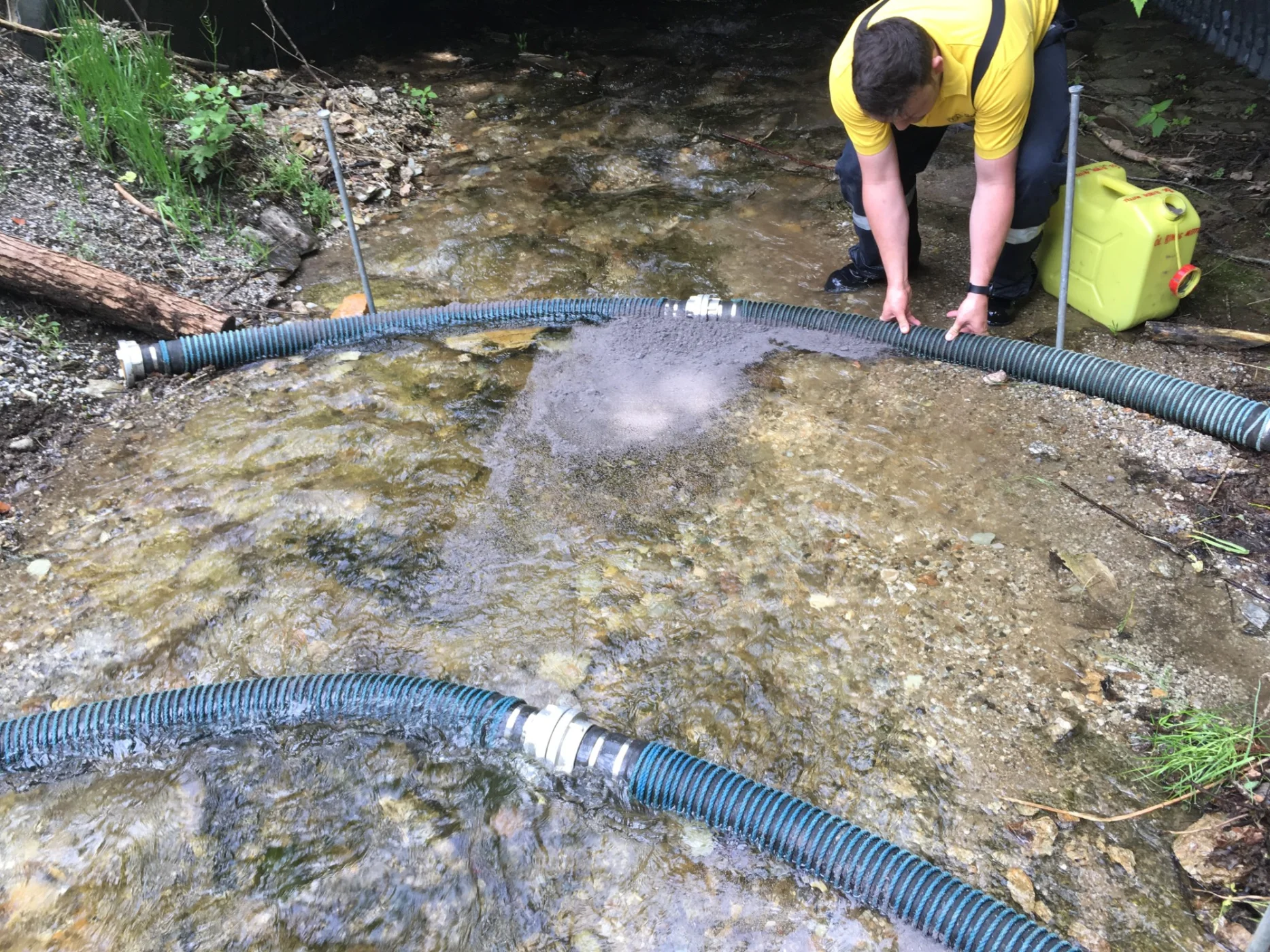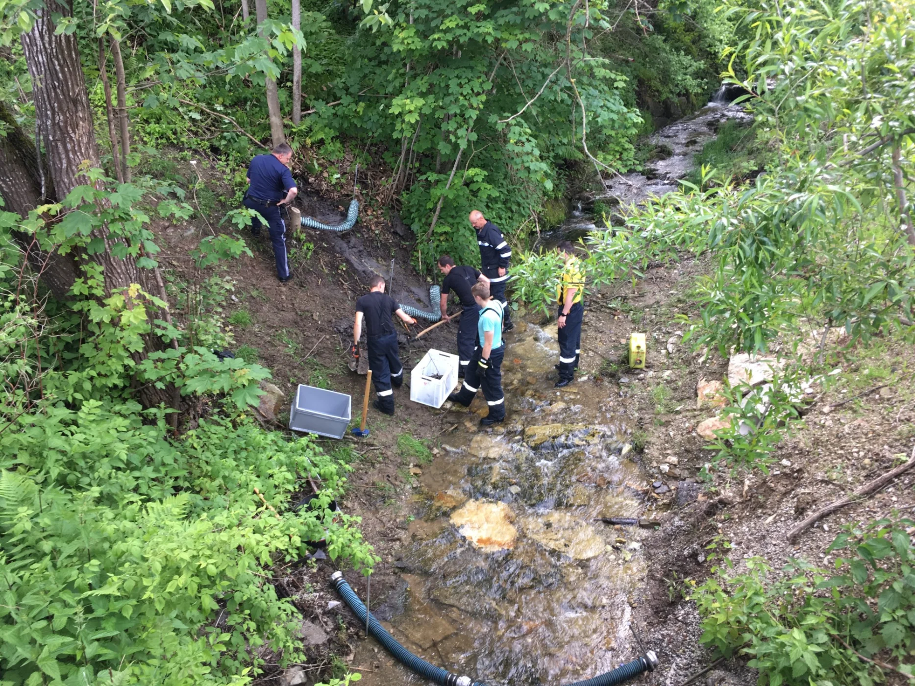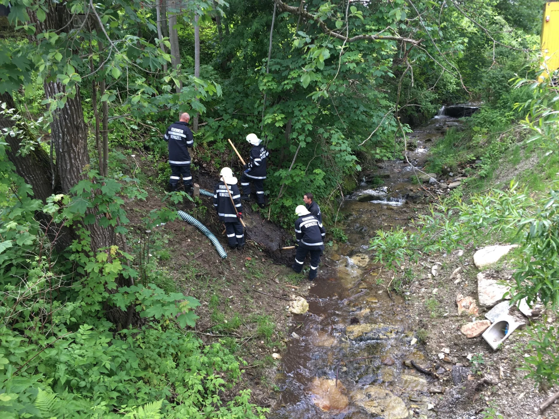Am Einsatzort eingetroffen fanden wir folgende Lage vor, aus einer Tankstelle am Betriebsgelände tropfte etwas Dieselöl und floss in den angrenzenden Haselbach. Sofort wurden Ölsperren errichtet und und das kontaminierte Erdreich abgetragen. Um eine Verschmutzung der Lafnitz zu verhindern, forderten wir die FF-Waldbach an, diese errichtete eine weitere Ölsperre auf Höhe Sagbauer. Des weiteren wurde auch die BH Hartberg-Fürstenfeld und die Polizei Vorau über den Einsatz benachrichtigt, welche nach kurzer Zeit am Einsatzort eintrafen und die weitere Vorgehensweise mit uns abklärten. Nach ca. 3 Stunden konnte der Einsatz beendet werden und wir rückten wieder ins Rüsthaus ein.