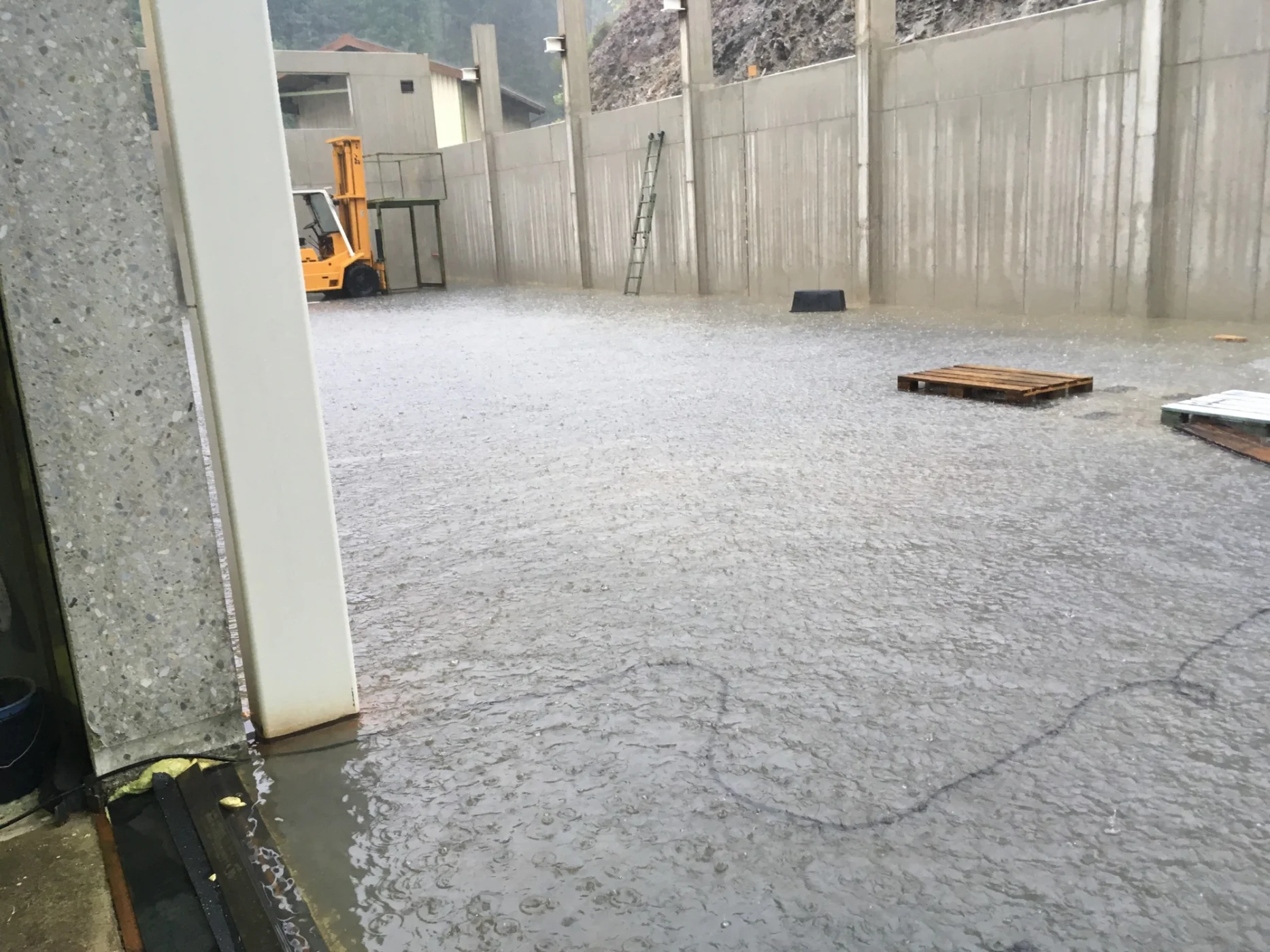 Am 01.06.2018 wurden wir um 13:00 Uhr von Florian Hartberg zu einer überschwemmten Halle eines Industriebetriebes mittels stillem Alarm alarmiert. Nach einem kräftigen Gewitter bei dem es ca. 45 Liter in einer Stunde geregnet hat, war dies die Erste von insgesamt neun Schadenslagen.