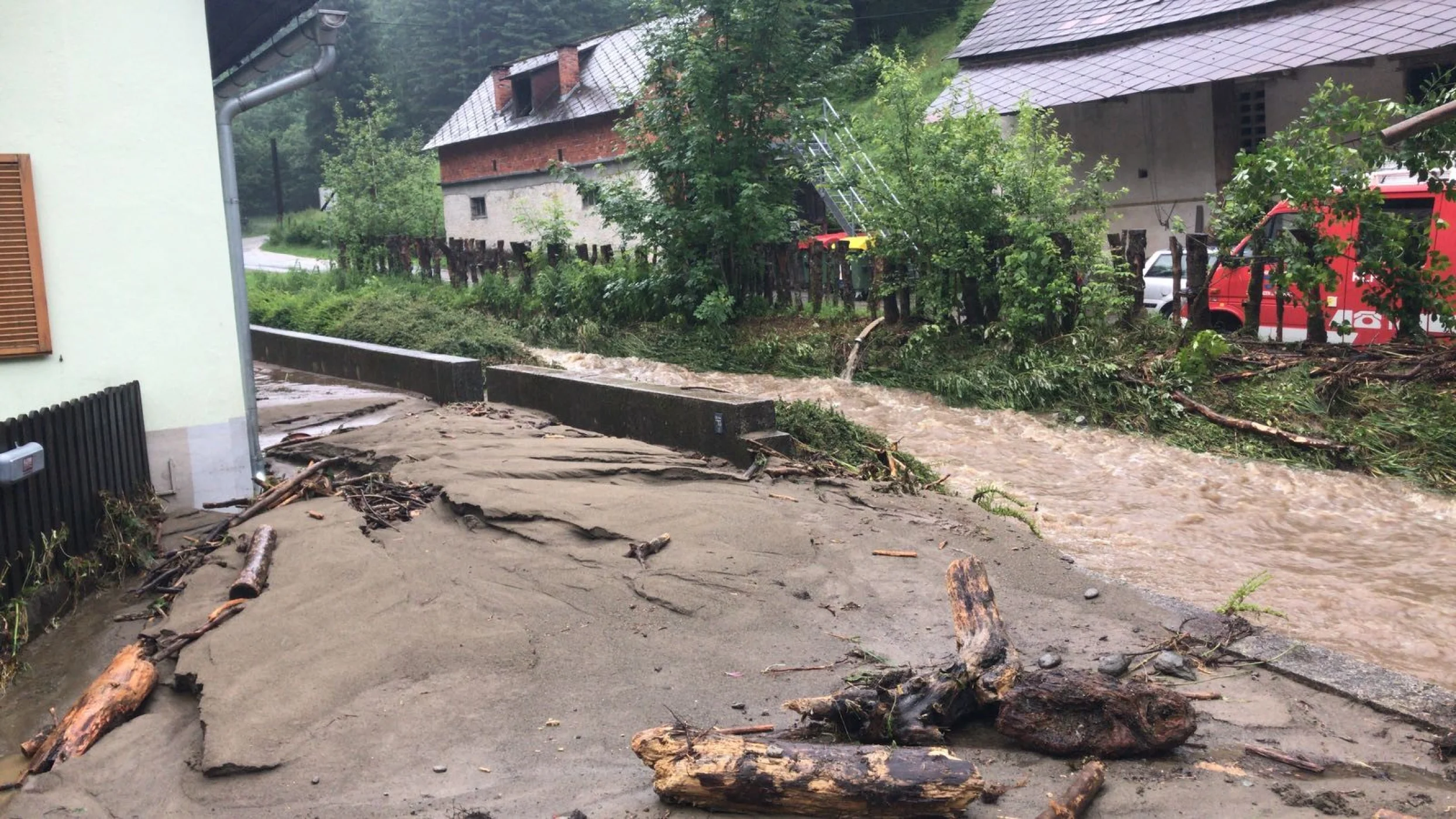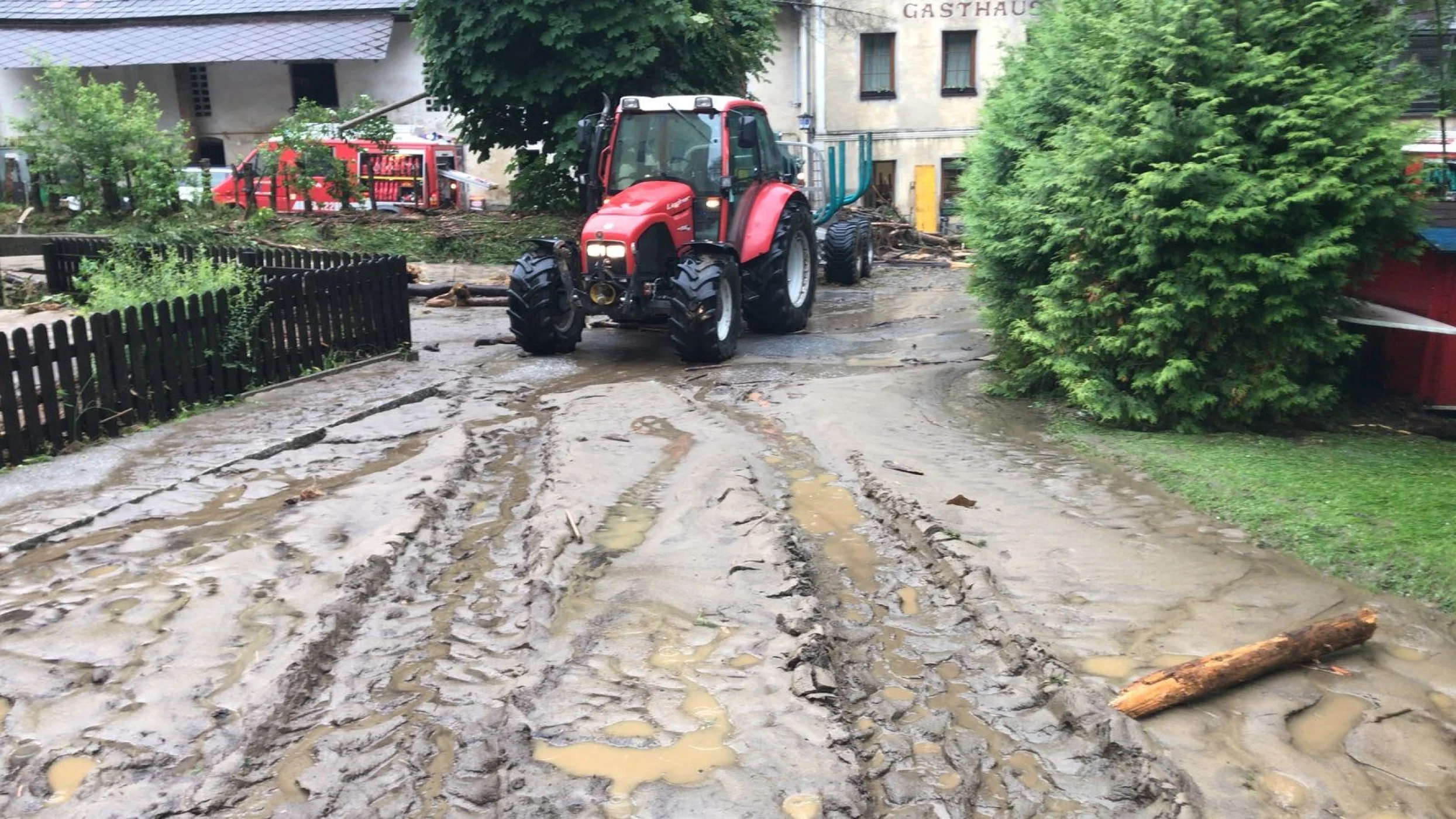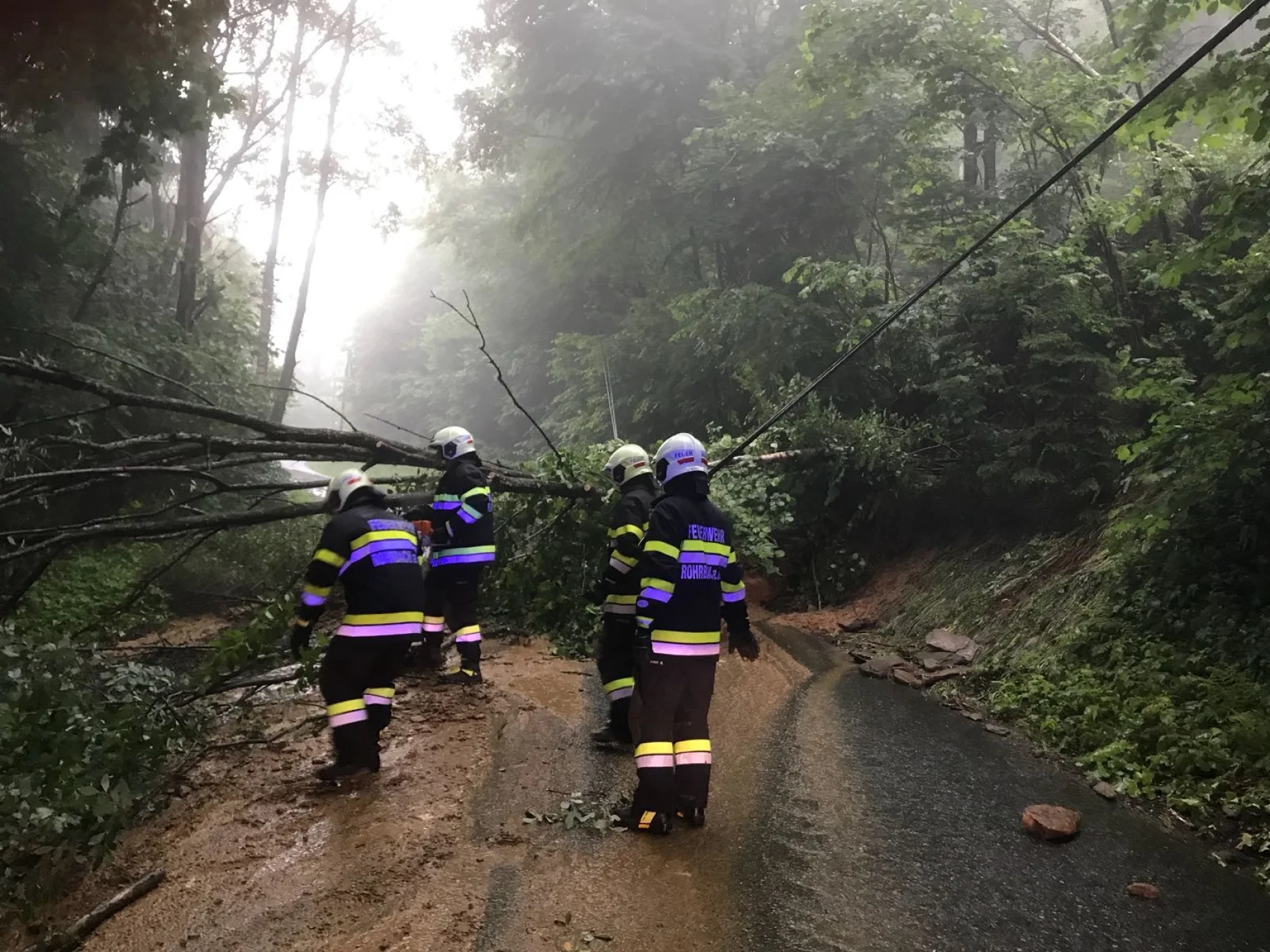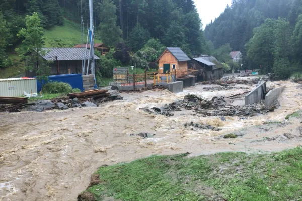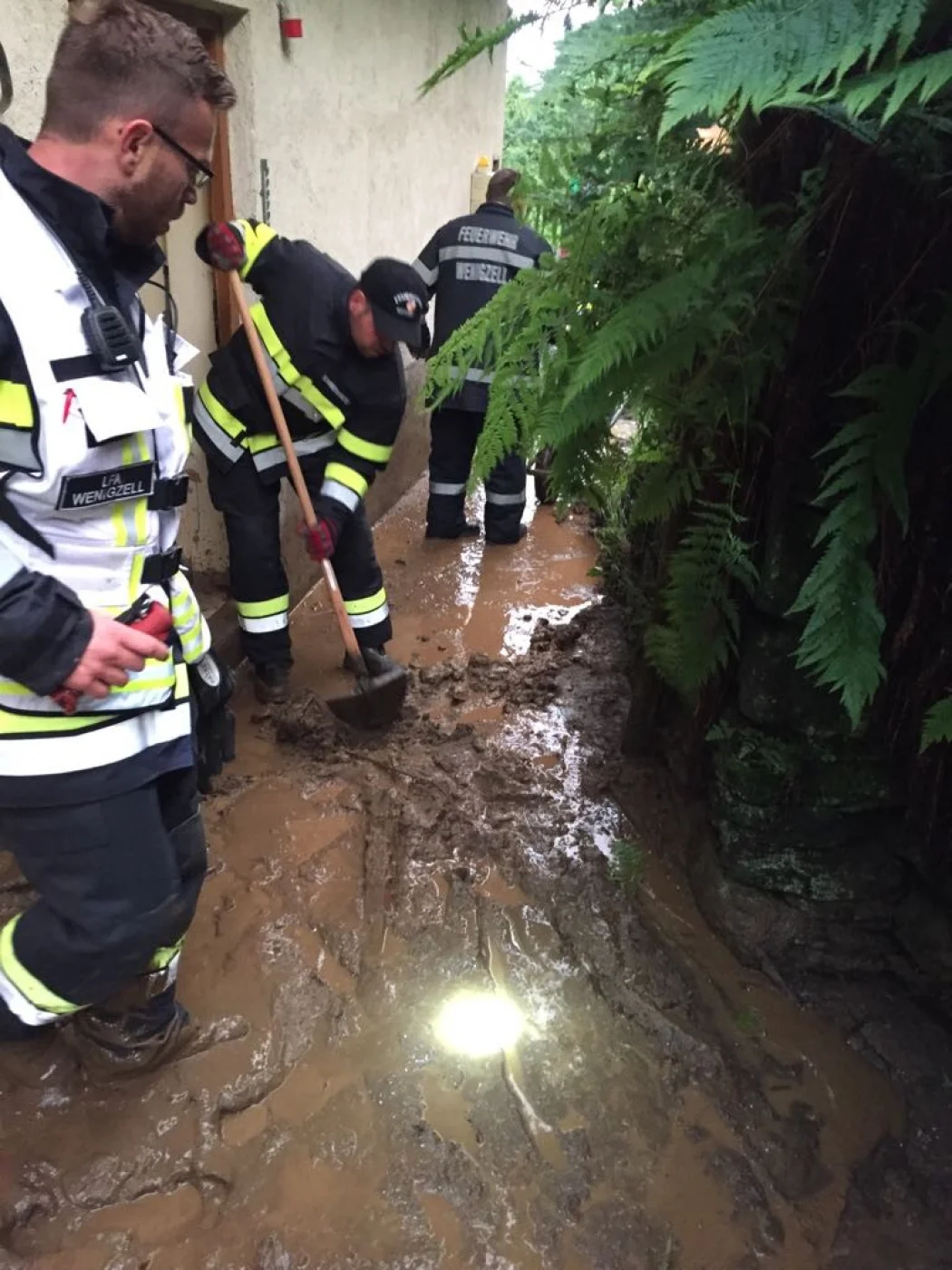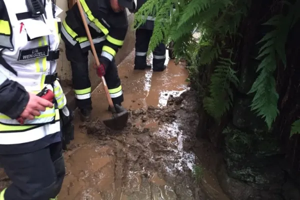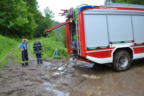 Als die Kameraden mit unserem RLFA-2000/100 im Einsatzgebiet ankamen, wurden aufgrund der heftigen Schadenslage weitere Kameraden der FF Wenigzell mittels LFA und MTFA angefordert. Starke Vermurungen, überflutete Keller und Häuser, sowie vom Dreck verschmutzte Fahrbahnen waren das Ausmaß des Starkregens, weiters traten auch sämtliche Bäche über die Ufer wodurch starke Verklausungen in den Bachbetten auftraten.