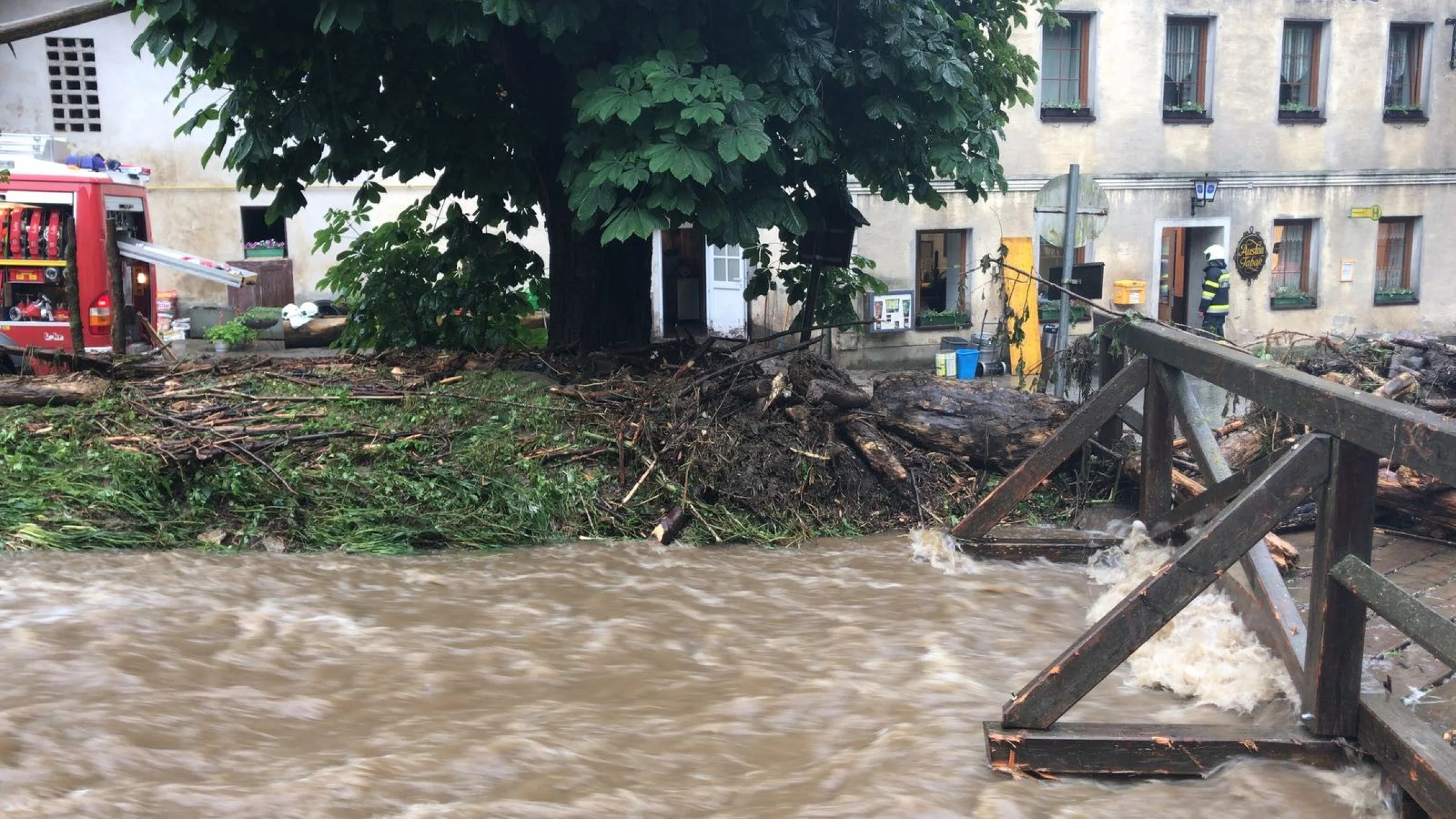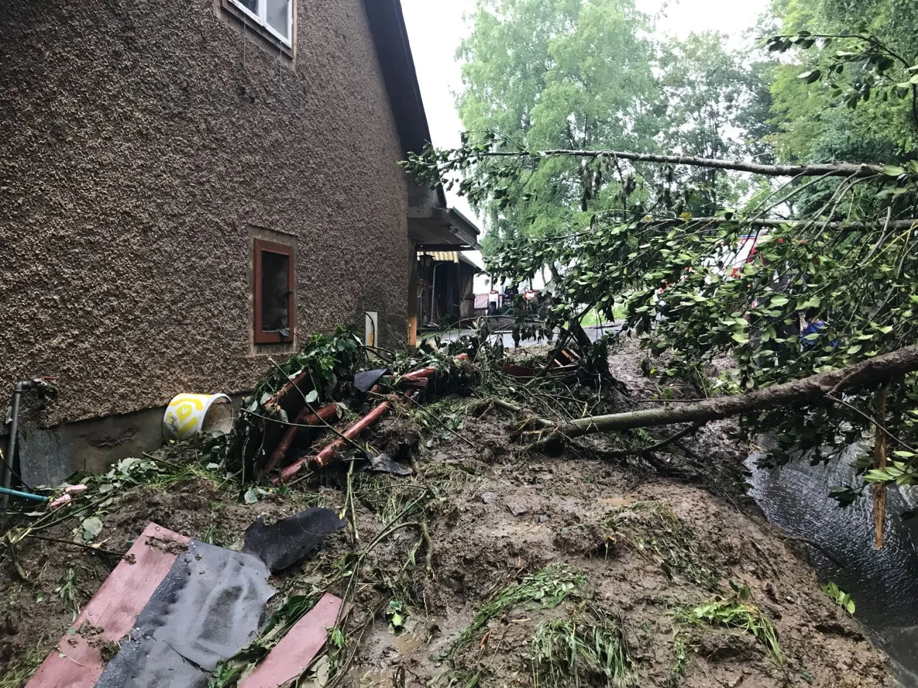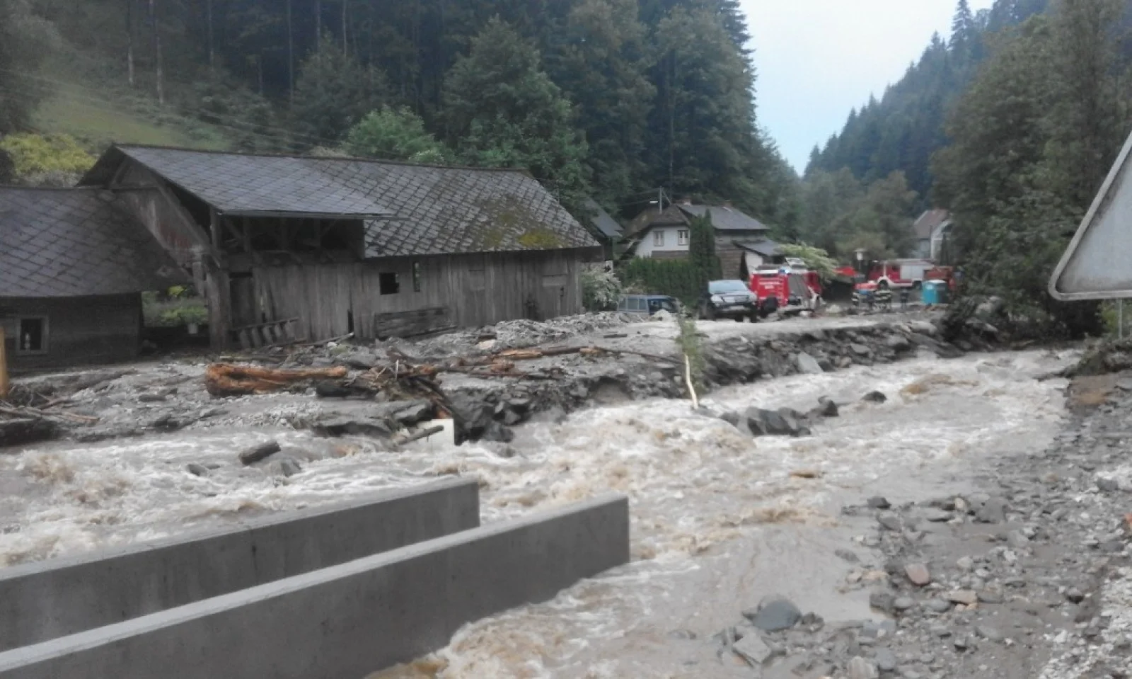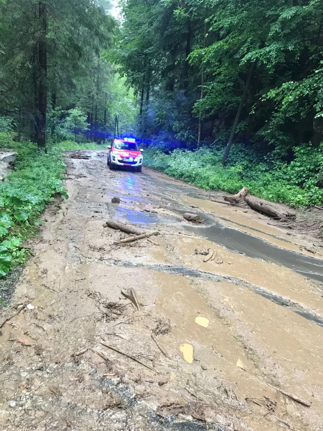 Als die Kameraden mit unserem RLFA-2000/100 im Einsatzgebiet ankamen, wurden aufgrund der heftigen Schadenslage weitere Kameraden der FF Wenigzell mittels LFA und MTFA angefordert. Starke Vermurungen, überflutete Keller und Häuser, sowie vom Dreck verschmutzte Fahrbahnen waren das Ausmaß des Starkregens, weiters traten auch sämtliche Bäche über die Ufer wodurch starke Verklausungen in den Bachbetten auftraten.