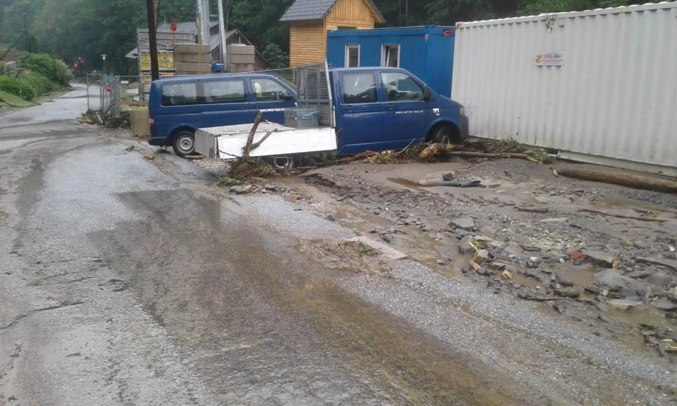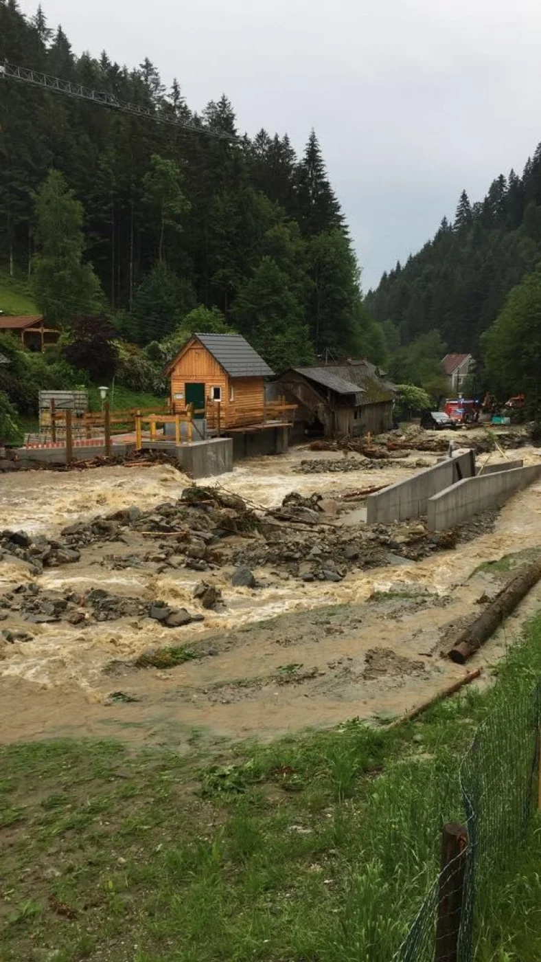 Teile von Festenburg bis nach Dreibach waren erst in den späten Abendstunden mit dem Auto erreichbar. Nach Absprache mit der Einsatzleitung unter Einsatzleiter HBI Thomas Allmer sowie den ansässigen Bürgermeister, musste eine Familie aufgrund eines herabrutschenden Hanges das Haus verlassen. Nach einem Lokalaugenschein unseres Bezirkshauptmannes Max Wiesenhofer sowie Bürgermeister von St. Lorenzen am Wechsel Hermann Pferschy seinem Stellvertreter Hermann Schantl und Bereichsfeuerwehrkommandant OBR Thomas wurde das Einsatzgebiet zum Katastrophengebiet deklariert. Die Feuerwehren St. Lorenzen am Wechsel, Mönichwald, Rohrbach an der Lafnitz, Waldbach, Vorau sowie die FF Pinggau mit dem Einsatzleitfahrzeug und die FF Wenigzell standen von Nachmittag bis in die Nachtstunden im Einsatz.