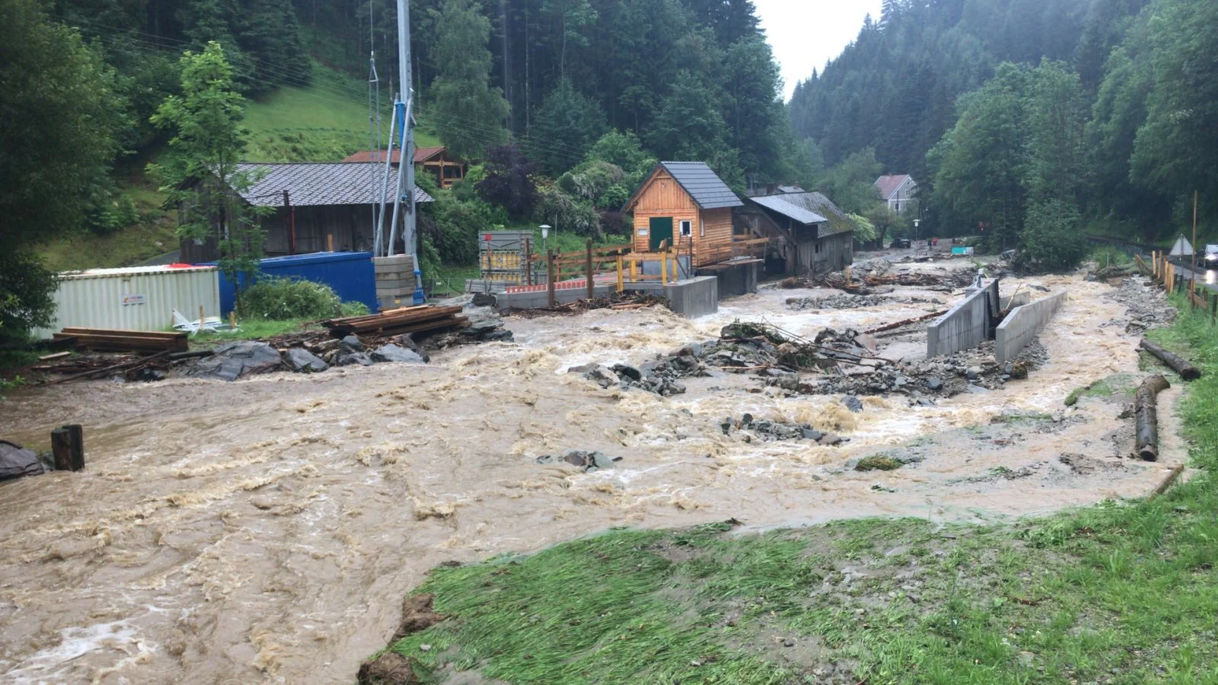 Nach den Unwettern am Freitag in Wenigzell, wurden wir am Montag dem 04. Juni 2018 gegen 17:30 Uhr telefonisch von der FF St.Lorenzen am Wechsel zur Unterstützung nach den starken Unwettern in Festenburg mittels RLFA-2000/100 und Straßenwaschanlage zu einem Einsatz gerufen.