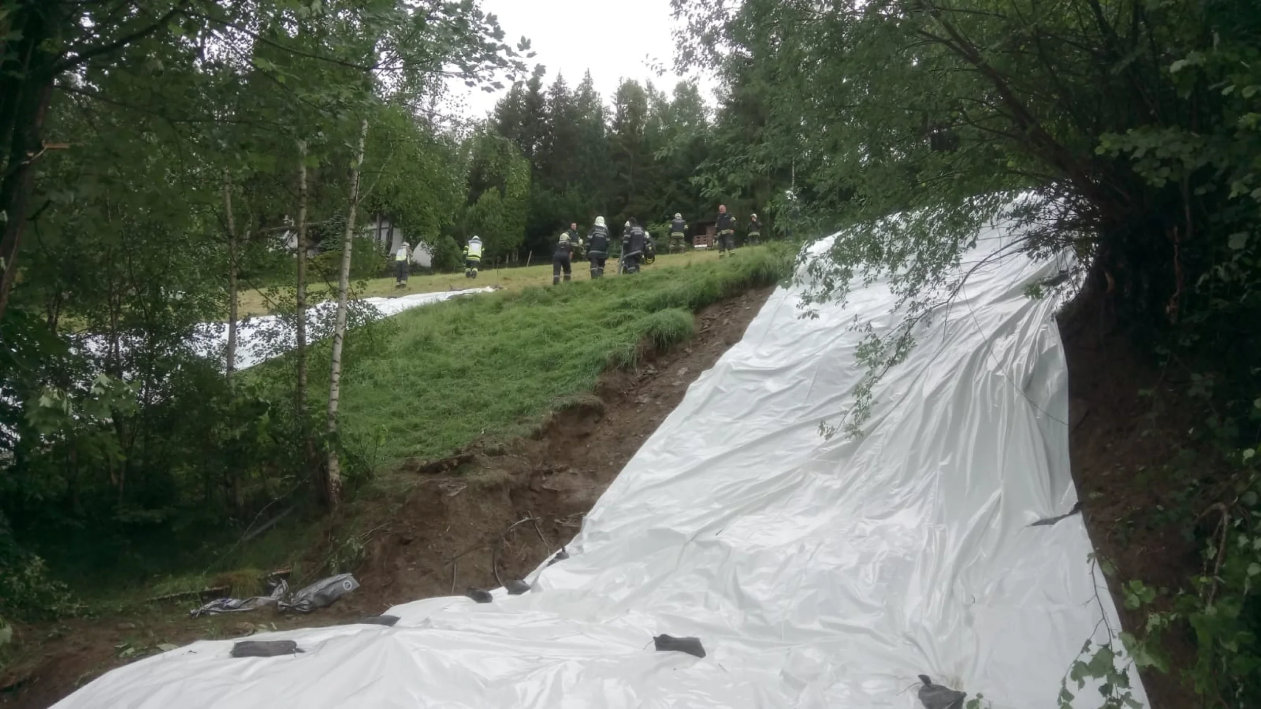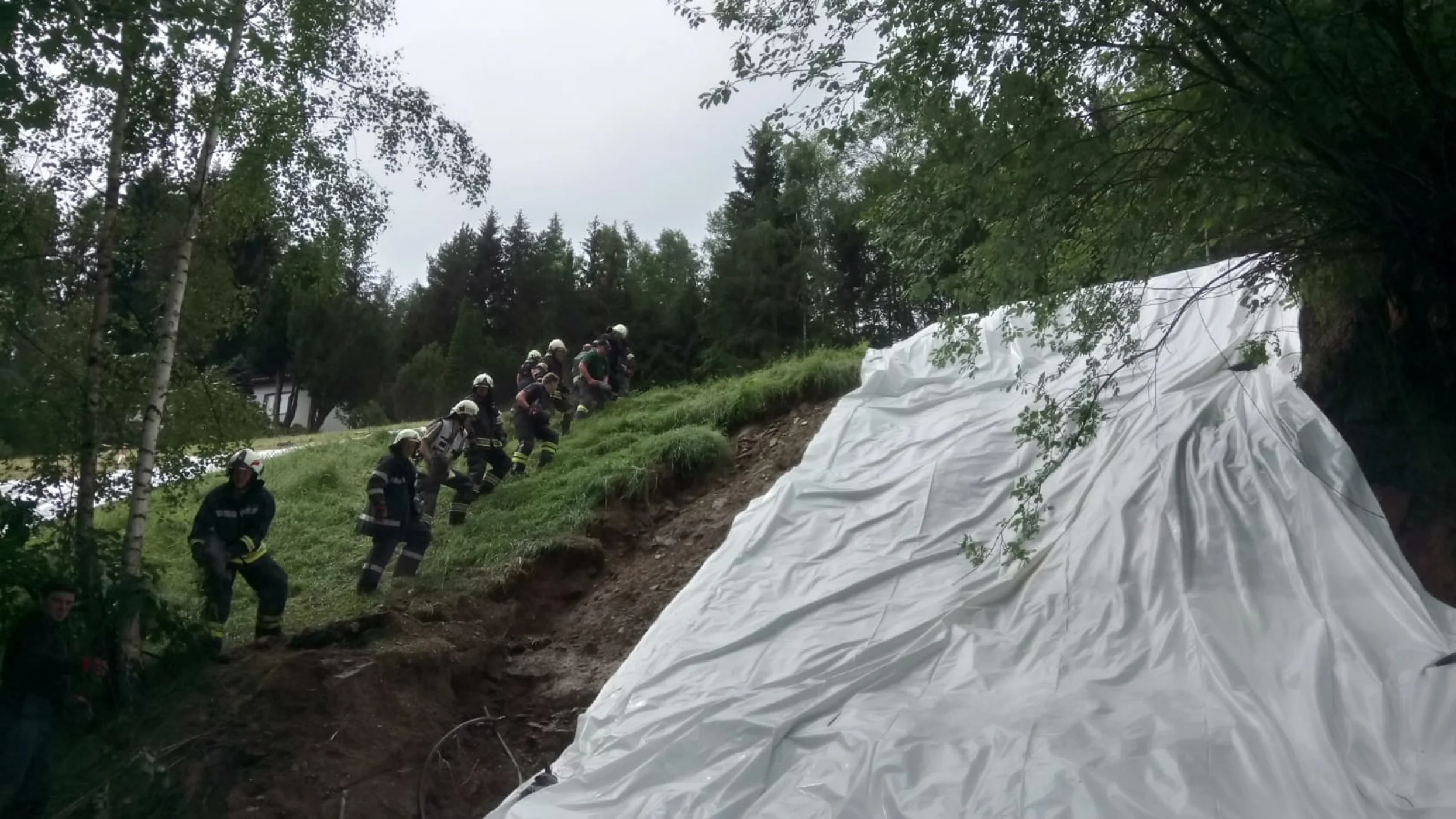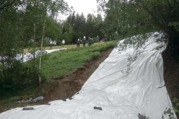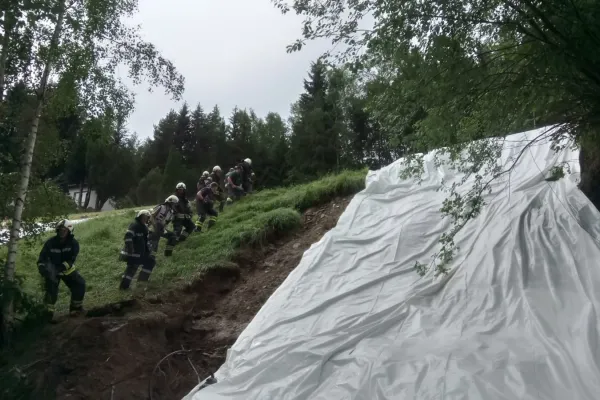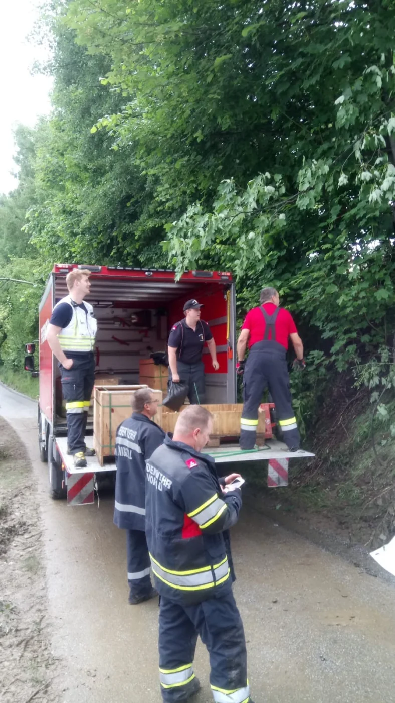 Am Dienstag 05.06.2018 wurden wir gegen 13:30 Uhr wieder zu einem Einsatz ins Katastrophengebiet alarmiert, unsere Aufgaben waren hauptsächlich die letzten Lagen, sowie Maßnahmen die seitens des Landes Steiermarks sowie des Geologen vorgegeben wurden, abzuarbeiten und umzusetzen. Diese Arbeiten waren hauptsächlich Sichern und Abdecken der zu abrutschen drohenden Hänge, welche aufgrund der Regenmassen stark auf- und unterschwemmt wurden. Seitens der FF Wenigzell standen alle Fahrzeuge mit 15 Mann von ca. 14:00 Uhr bis 18:00 Uhr im Einsatz, ehe wir wieder ins Rüsthaus einrücken und unsere Einsatzbereitschaft herstellen konnten.