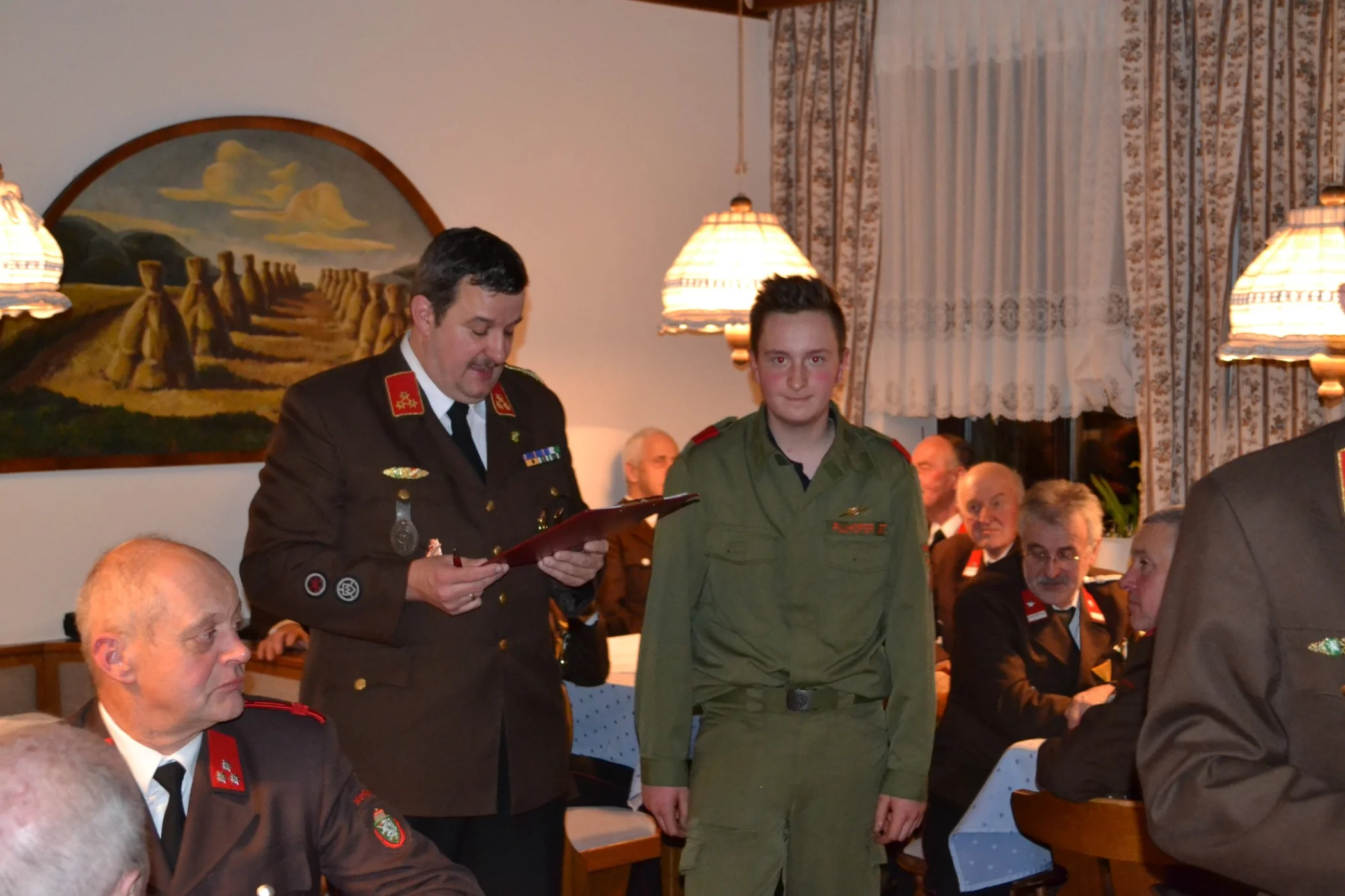 Jungfeuerwehrmann Stefan Pillhofer wurde aufgrund der Absolvierung aller drei Wissenstest in Bronze, Silber und Gold und des erreichten Mindestalters zum Probefeuerwehrmann befördert