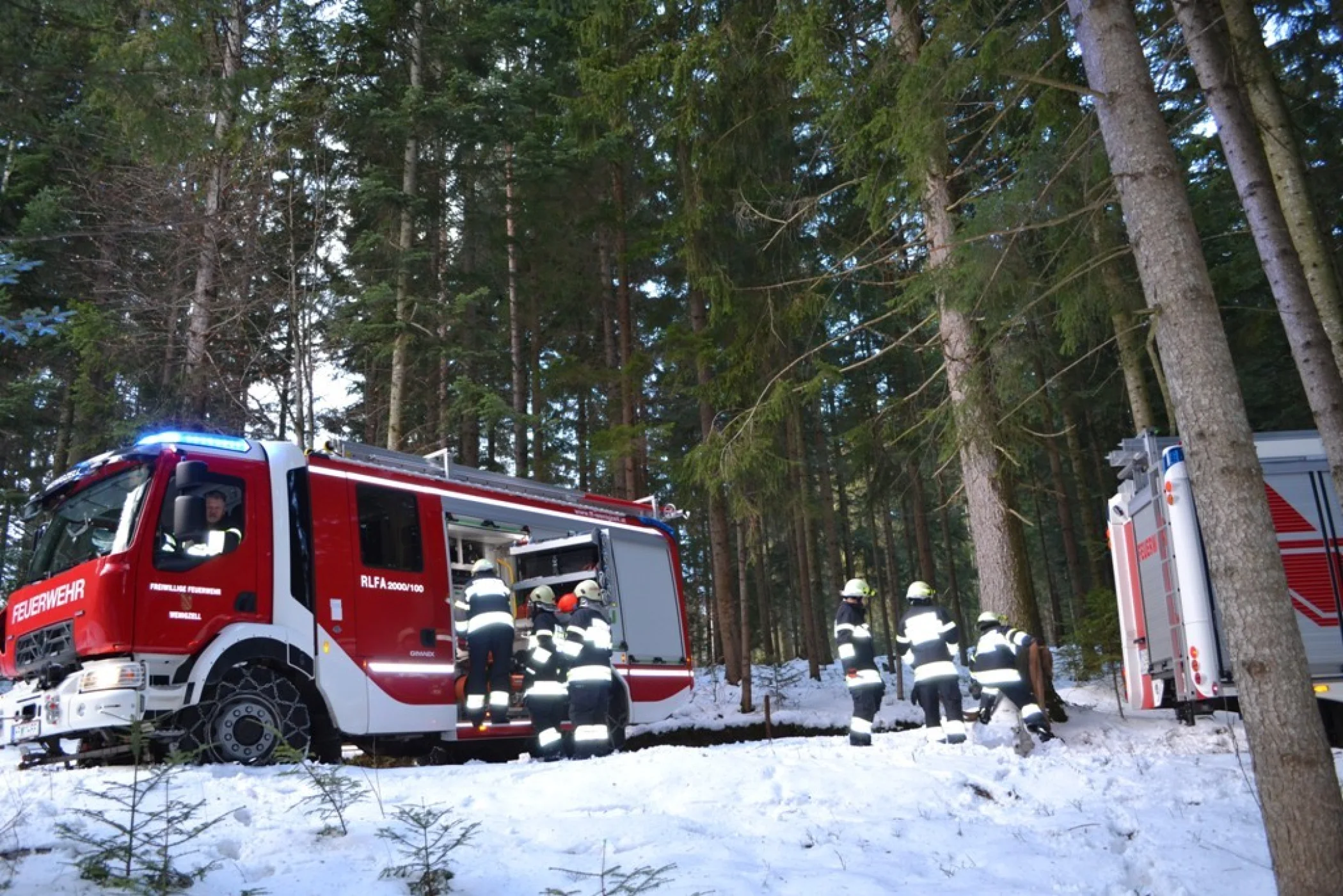 Eingesetzt waren: RLFA-2000/100, LFA mit 11 Mann sowie Gemeinde Wenigzell mit Streufahrzeug