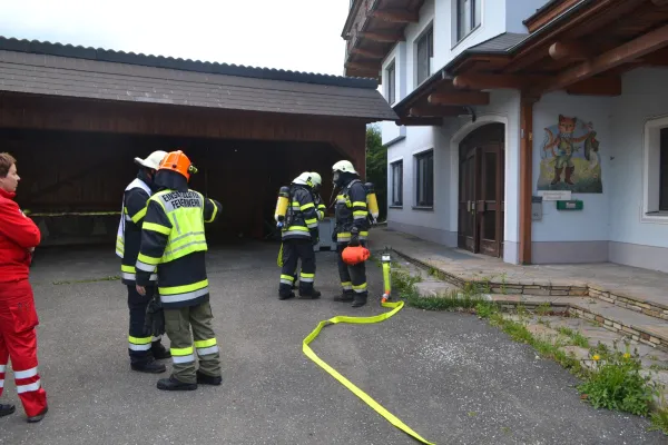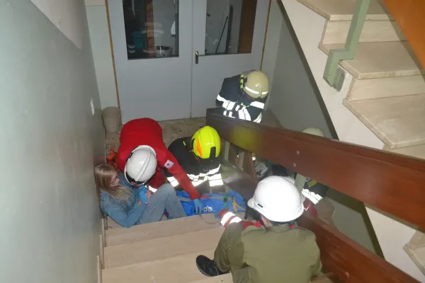Die FF St. Jakob im Walde stellte einen zweiten Atemschutztrupp und unterstützte bei der Rettung der verletzten Personen. Die FF Pöllau unterstützte, mittels Drohne und Wärmebildkamera, die Bergrettung bei der Suche nach der vermissten Person. Nach kurzer Zeit konnte eine verletzte Person gerettet und dem Roten Kreuz übergeben werden. Dieses transportierte die Verletzten in das Rüsthaus Wenigzell, wo ein medizinisches Erstaufnahmezentrum errichtet wurde. Zum Ende der Übung konnte auch die vermisste Person gefunden und gerettet werden.