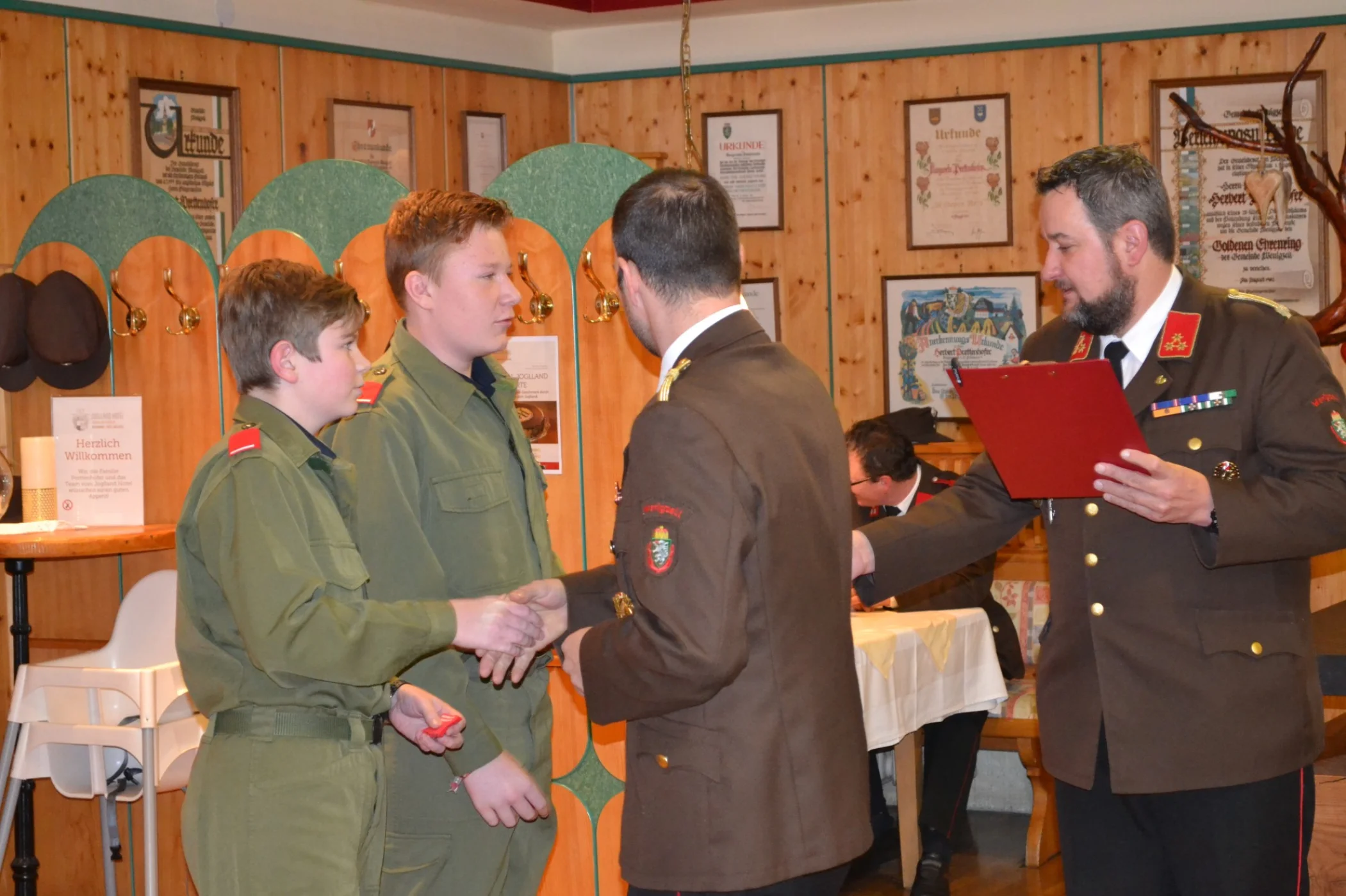 PFM Jana Archam, PFM Michael Ochabauer, PFM Mathias Reithofer und PFM Maximilian Ebner wurden aufgrund der positiven Absolvierung von Grundausbildung 1 und Grundausbildung 2 zu Feuerwehrmännern bzw. Feuerwehrfrau befördert und somit offiziell in den Feuerwehrdienst gestellt.