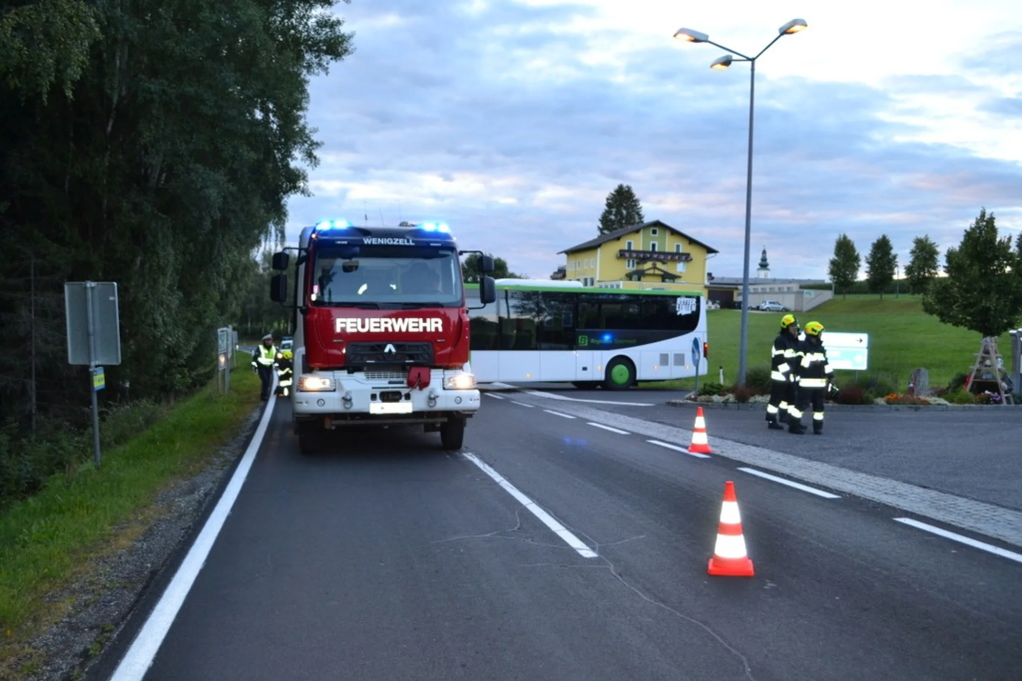 Am Montag dem 30.08.2021 wurden wir um 06:16 Uhr mittels stillem Alarm zu einer Busbergung bei der Ortsausfahrt gerufen. Sofort machten wir uns mit MTFA, RLFA 2000-100 und LFA Wenigzell zur ca. 1 km entfernten Einsatzstelle auf dem Weg.