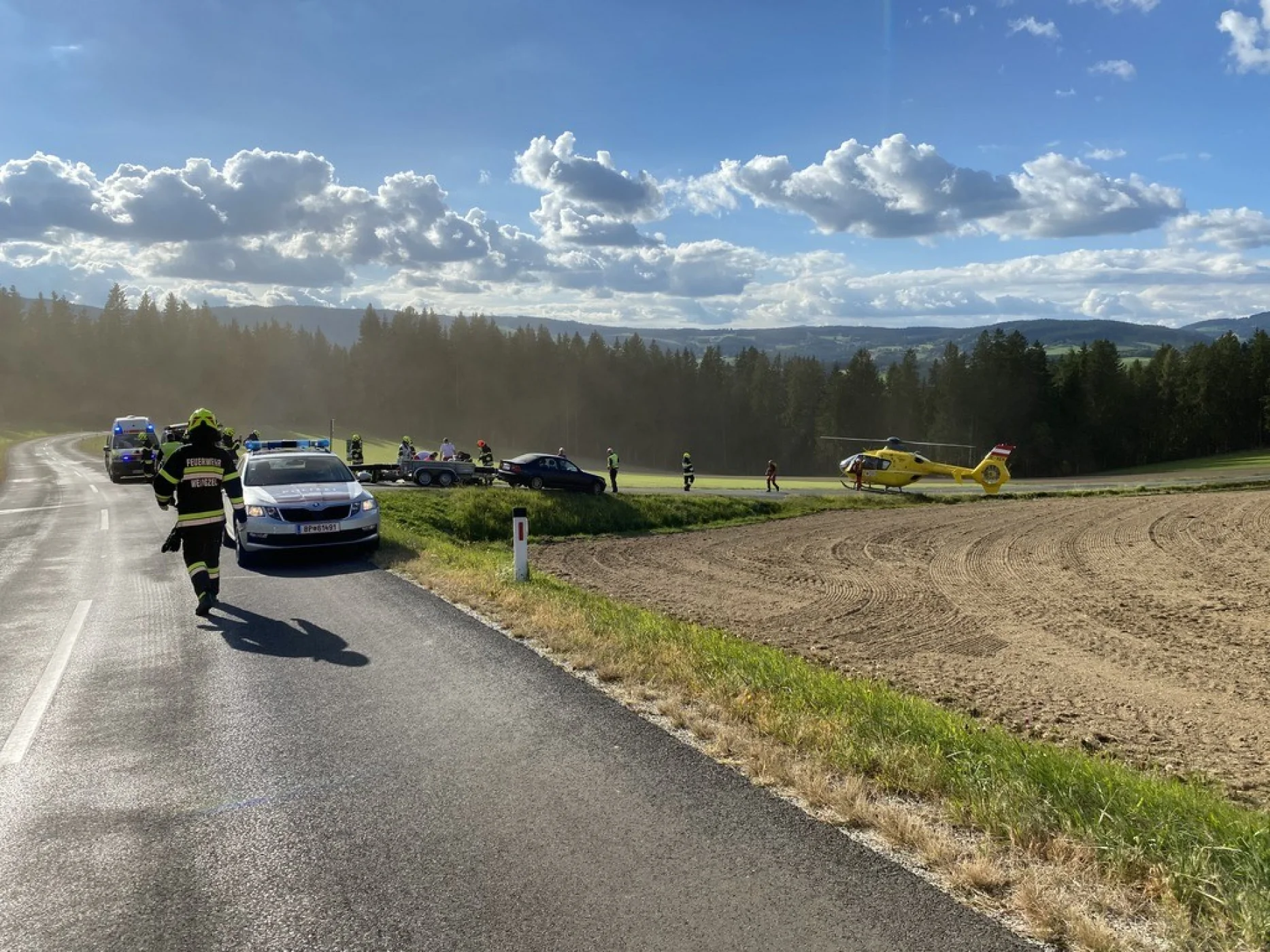 Am Einsatzort angekommen bot sich uns folgendes Bild, aus bisher ungeklärter Ursache kollidierten ein PKW samt Anhänger und ein Motorradfahrer, welcher zu Sturz kam und sich schwere Verletzungen zuzog, Rotes Kreuz und Notarzt waren bereits vor Ort, ebenso wurde der Notarzthubschrauber Christophorus 16 bereits angefordert. Unsere Aufgaben bestanden darin die Unfallstelle abzusichern, sowie einen Brandschutz aufzubauen. Für die Landung des Notarzthubschraubers wurde die L408 im Unfallbereich komplett gespertt. Weiters unterstützten wir das Rote Kreuz bei der Versorgung des Verunfallten. Nachdem die verletzte Person mit dem Notarzthubschrauber abtransportiert wurde, reinigten wir noch die Unfallstelle und konnten die Straße wieder für den Verkehr freigeben. Danach konnten wir uns um 18:15 Uhr wieder mit allen Fahrzeugen zurück und einsatzbereit melden.