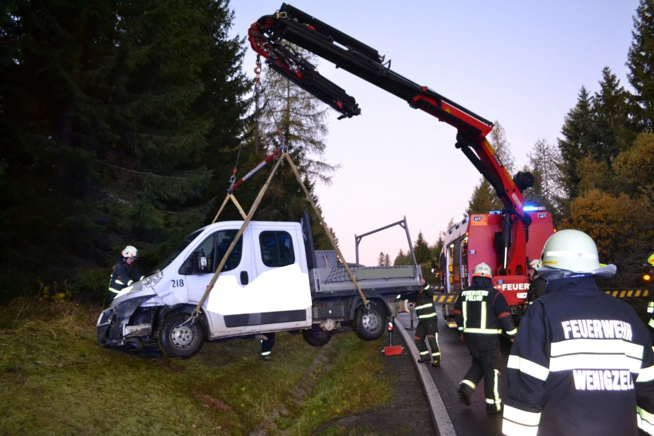 Am Freitag, dem 29.10.2021, wurden wir um 06:14 Uhr von Florian Steiermark mittels stillem Alarm zu einer Fahrzeugbergung auf die L-405 Höhe Kreuzwirt gerufen. Sofort machten wir uns mit MTFA, RLFA 2000-100 und LFA zur ca. 7 km entfernten Einsatzstelle auf dem Weg.