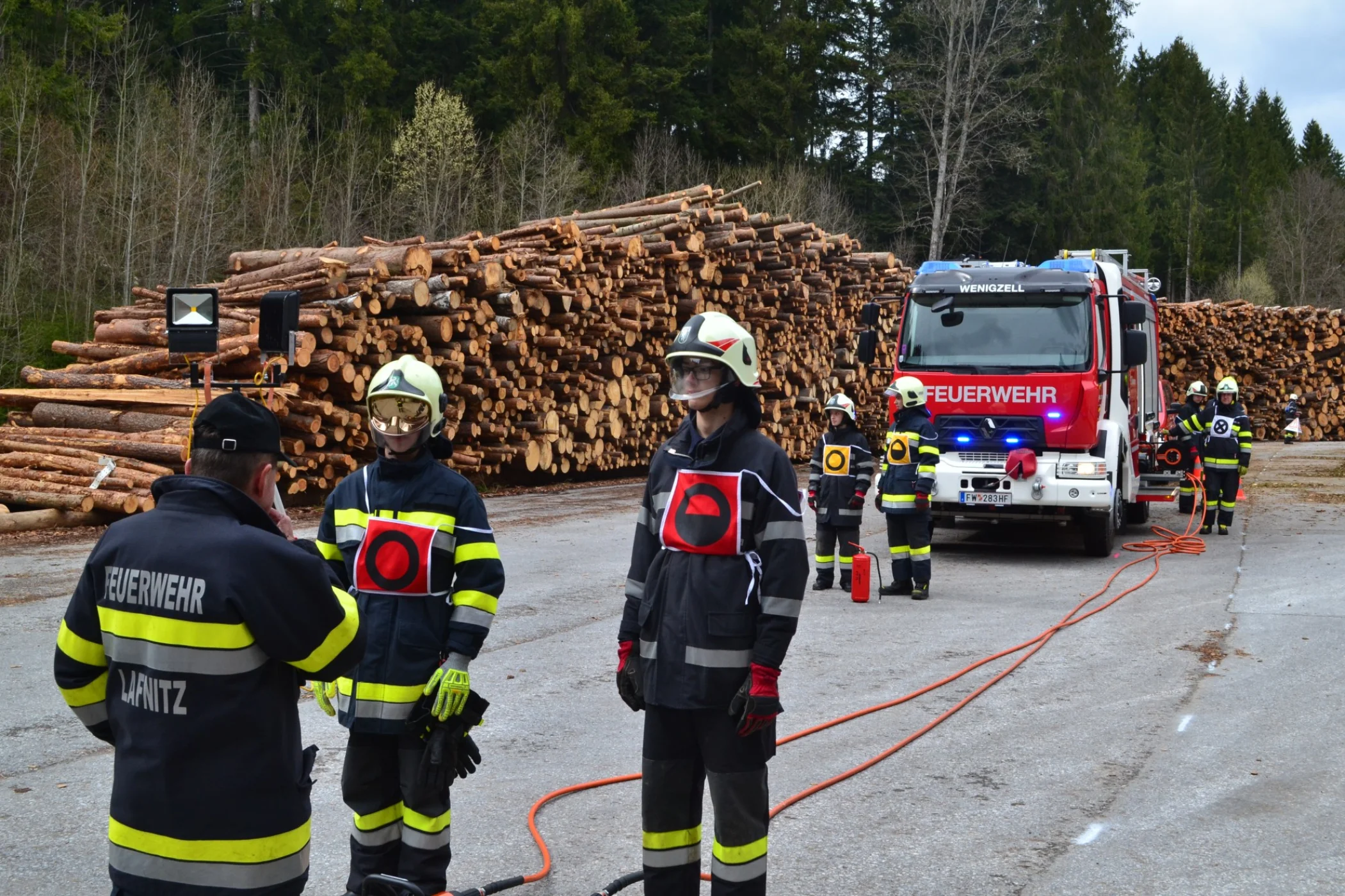 Nach rund 2 monatiger Vorbereitungszeit fand am Samstag dem 09. April 2022 die Abschlussprüfung für die Grundausbildung GAB 1 beim Heizwerk Grabner in Wenigzell statt. Rund 12 Jungflorianis davon 5 aus Wenigzell, 4 aus Eichberg und 3 aus Mönichwald stellten sich der Prüfung, welche sich in 2 Brandszenarien (Scheunenbrand und Holzstapelbrand) und einem Verkehrsunfall gliederten.