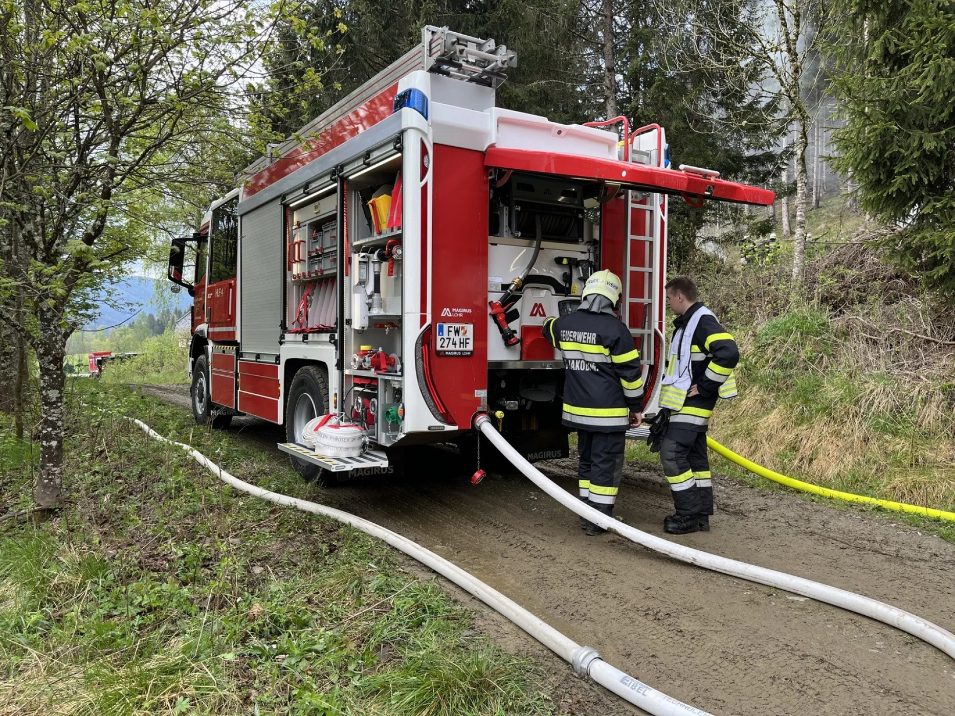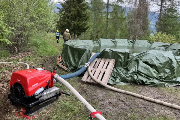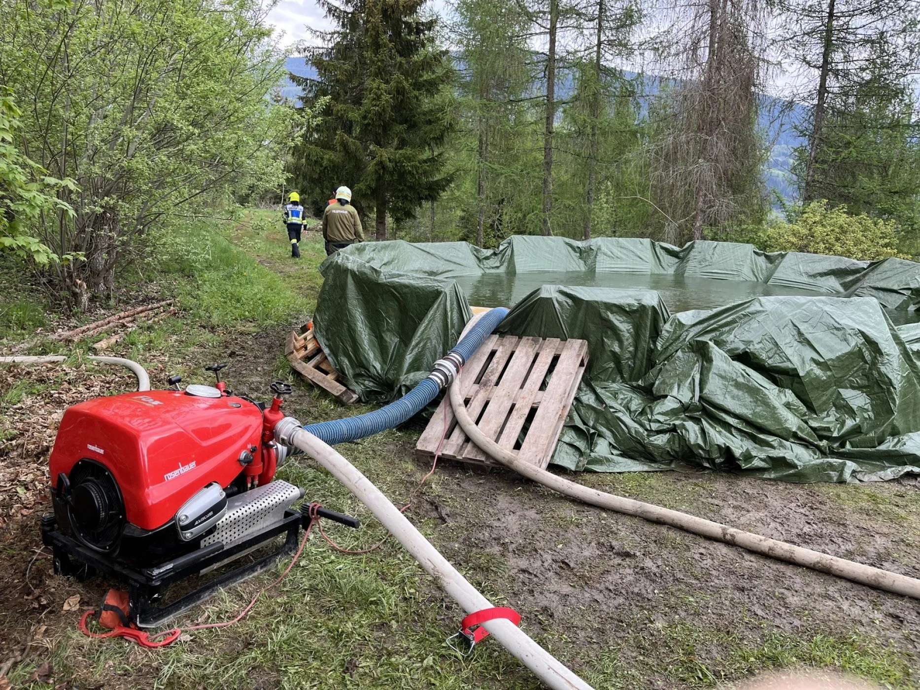 Im unwegsamen Gelände gestaltete sich die Herstellung der Löschwasserversorgung sehr schwierig. Es musste eine Zubringleitung mit Hilfe von drei Tragkraftspritzen über mehrere hundert Höhenmeter aufgebaut werden, welche den zuvor errichteten, provisorischen Löschwasserbehälter versorgten. Anschließend konnte vom Speicherbehälter mit einer weiteren Tragkraftspritze Wasser an die jeweiligen Löscheinheiten verteilt werden. Nebenbei wurde im Kommandofahrzeug der FF Rohrbach eine örtliche Einsatzleitung zur Verwaltung der eingesetzten Kräfte errichtet.