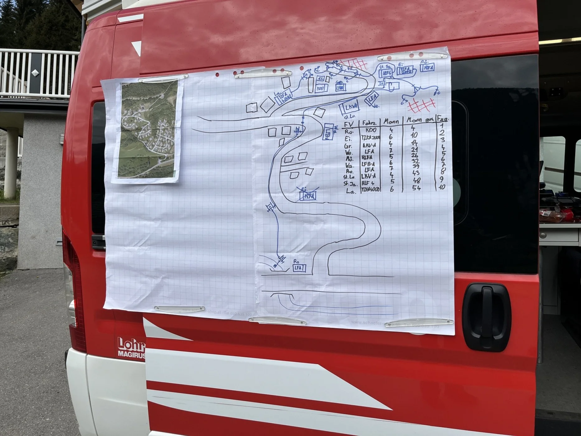 Um ca. 07:30 Uhr traf die Besatzung am Sammelplatz bei der Talstation der Kreischbergskilifte im Bezirk Murau ein. Nach der Erkundung durch den KHD-Zugskommandanten ABI Markus Allmer und seine Stellvertreter HBI Gerald Weber und OBI Stefan Fuchs wurden den Gruppenkommandanten der einzelnen Feuerwehren ihre Aufträge zugeteilt.