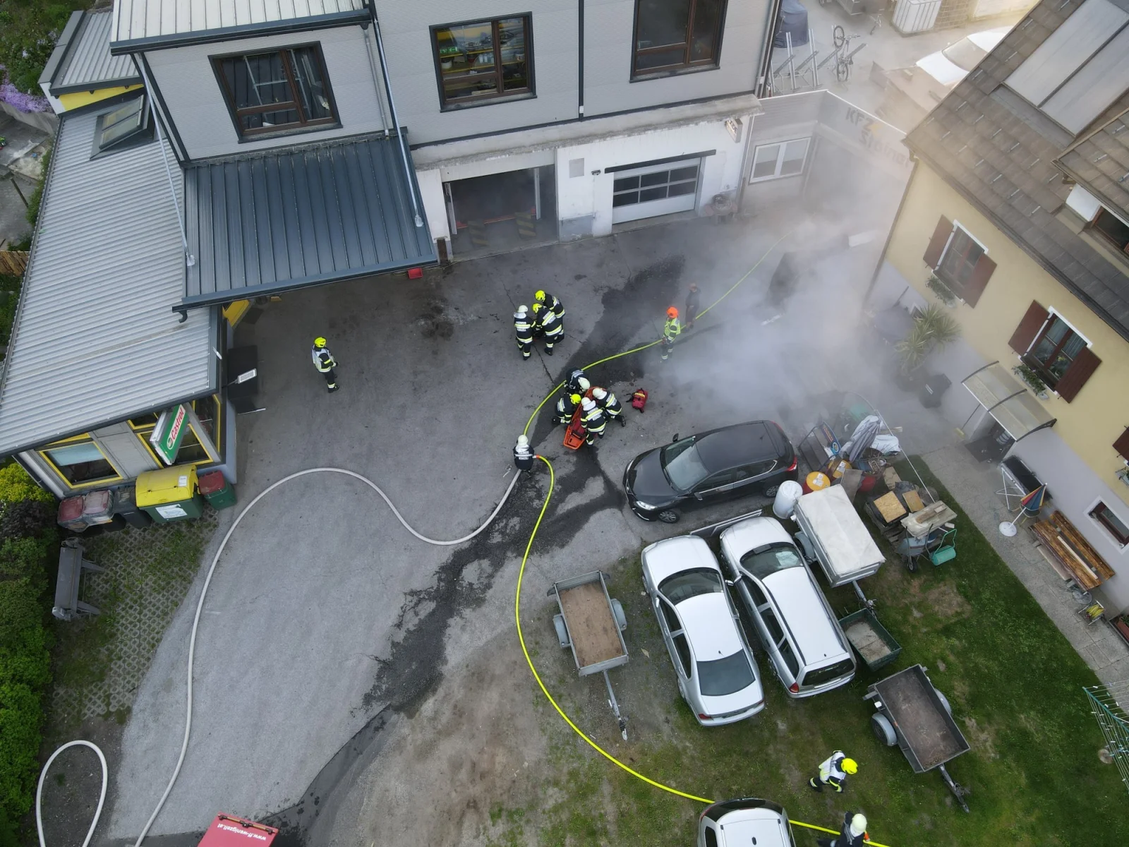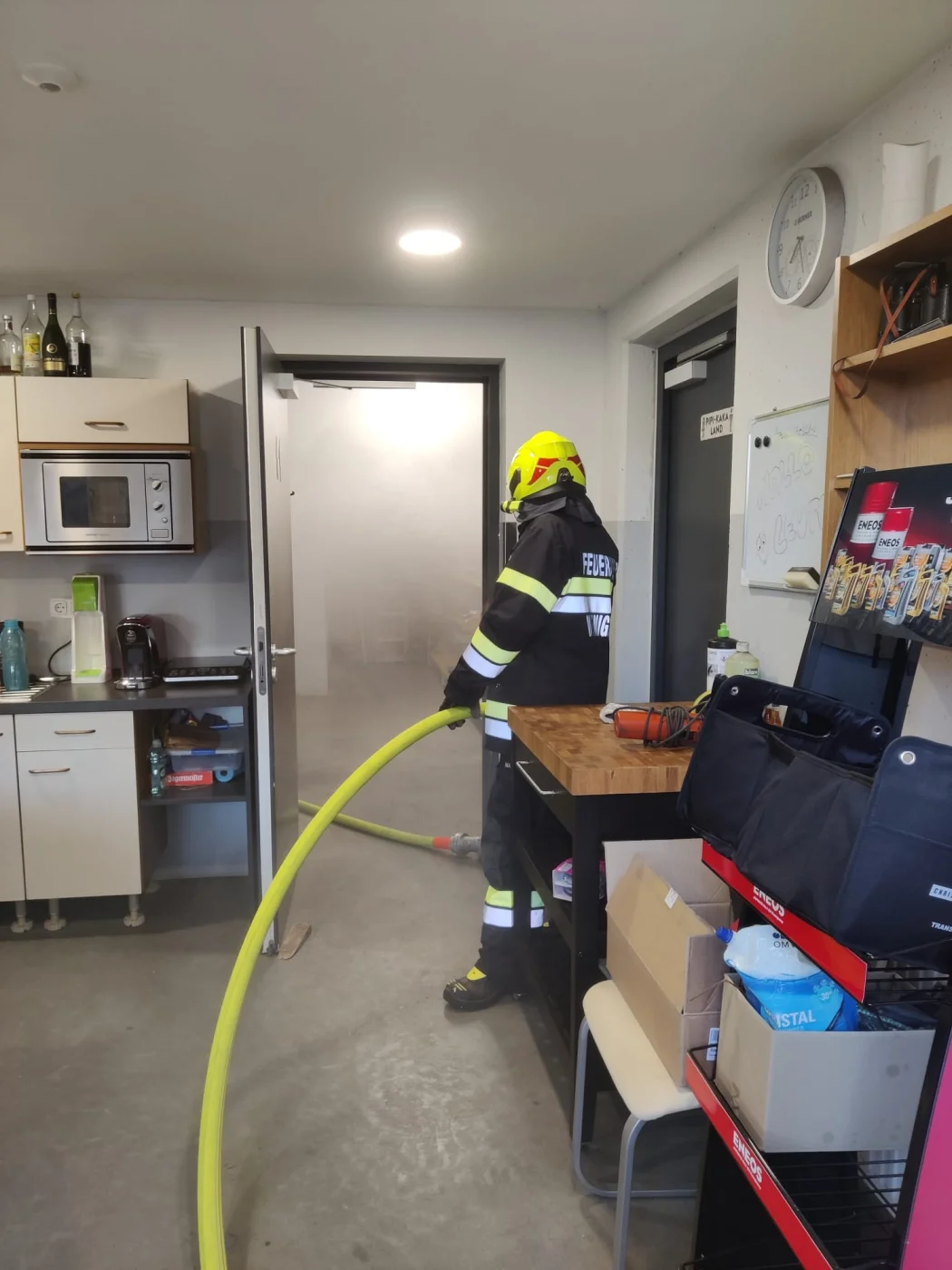 Am Einsatzort angekommen bot sich uns folgendes Bild, in einer Werkstatt brach ein Brand aus wodurch das gesamte Gebäude stark verraucht war und des weiteren wurden drei Personen vermisst. Sofort bauten wir die Einsatzleitung auf und die Mannschaft des RLFAs konnte bereits alles für den Atemschutzeinsatz vorbereiten. Währenddessen stellte das LFA die Wasserversorgung über einen Hydranten sicher, nach kurzer Zeit konnte unser Atemschutztrupp einen ersten Erfolg vermelden und rettete eine der vermissten Personen. Im Laufe des Einsatzes baute das LFA eine weitere Wasserversorgung mit der Tragkraftspritze auf. Als der Atemschutztrupp alle Personen gerettet und den Brand gelöscht hat wurde das Gebäude noch mittels Druckbelüfter rauchfrei gemacht. Nachdem Brand-Aus gegeben war, konnten wir wieder einrücken und die Einsatzbereitschaft wiederherstellen und uns schließlich um 21:15 Uhr wieder zurück melden.
