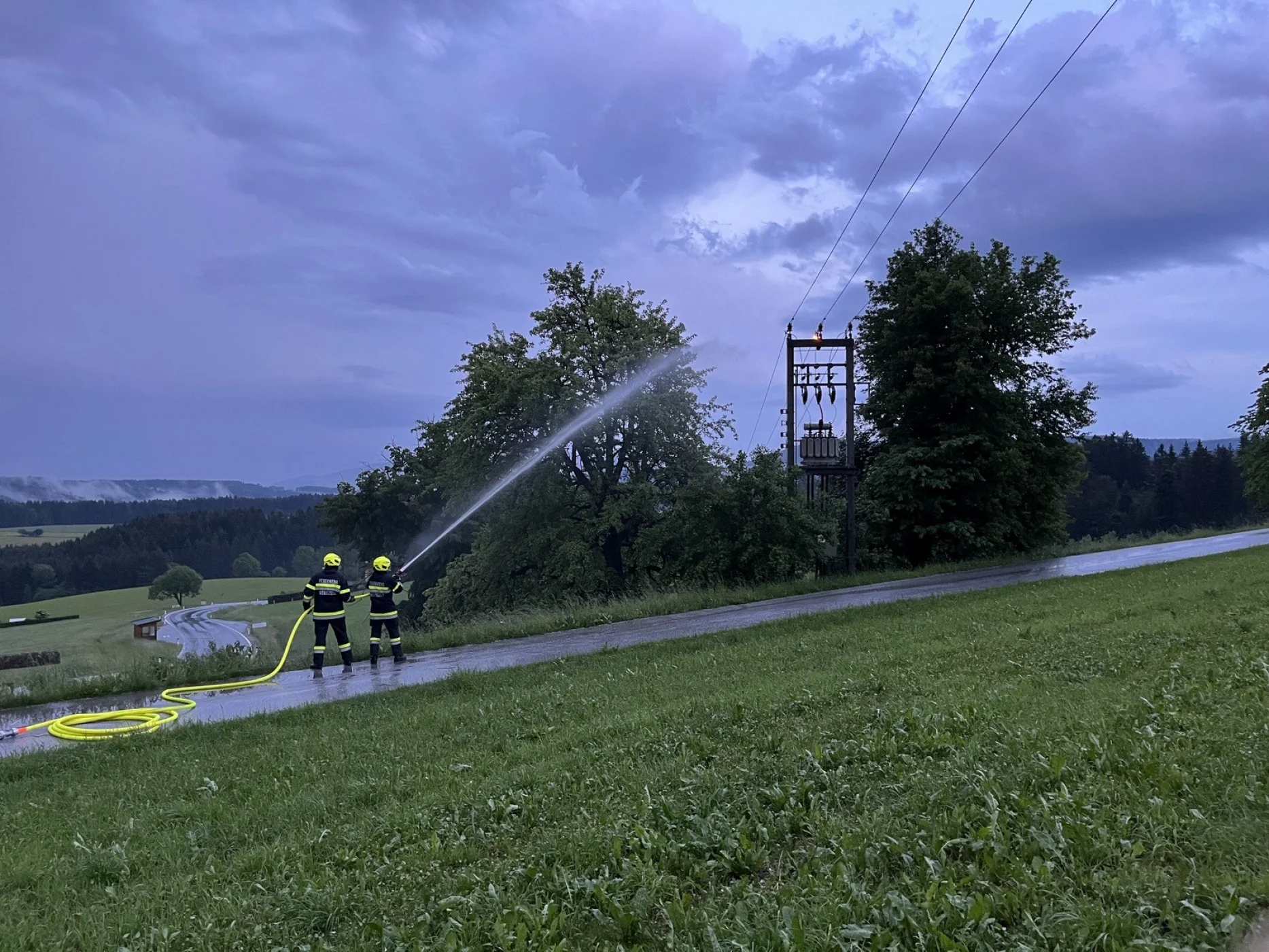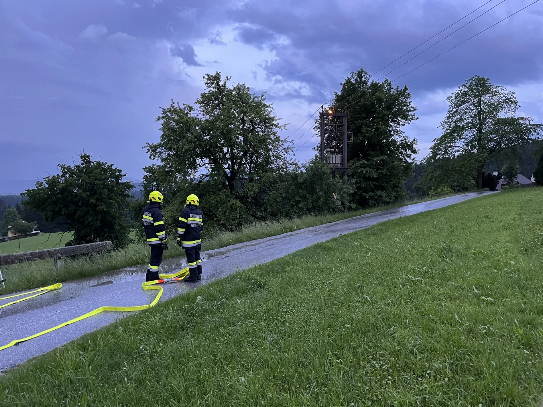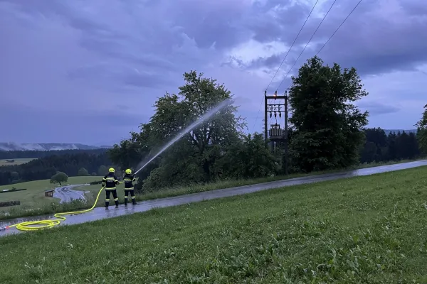 Nachdem wir die 1 km zum Einsatzort zurückgelegt haben, bot sich uns folgendes Bild: nachdem ein Blitz in eine Trafostation eingeschlagen hat, stand diese in Flammen. Wir bauten mit der Mannschaft des RLFA´s sofort einen Löschangriff auf und warteten bis die Trafostation freigeschaltet war. Nachdem wir von der Energie Steiermark die Freigabe erhalten haben, konnten wir sofort mit dem Löschangriff beginnen. Der Brand konnte in kurzer Zeit gelöscht werden und wir konnten wieder einrücken. Nach ca. einer Stunde konnten wir uns zurück und einsatzbereit melden.