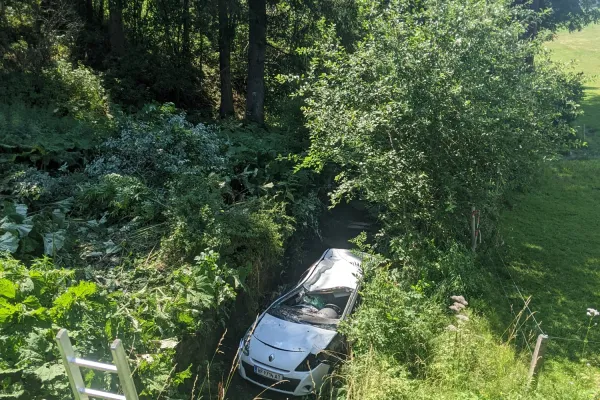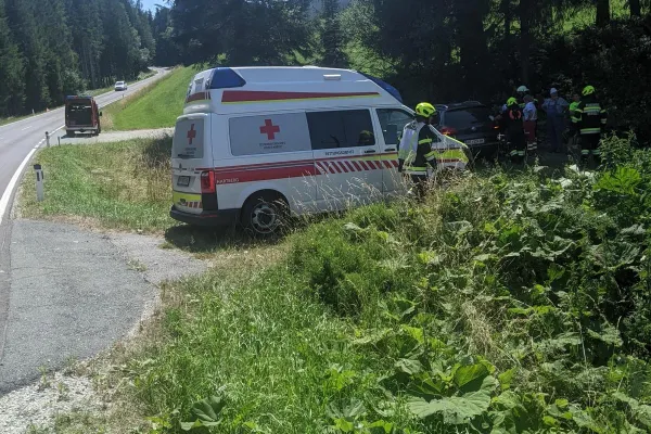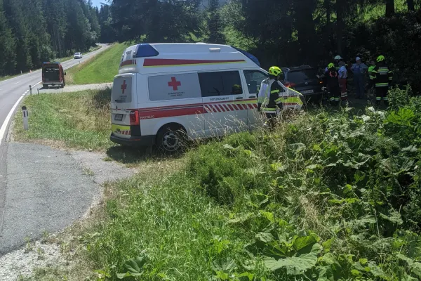 Am Donnerstag dem 21.07.2022 wurden wir gegen 14:14 Uhr mittels Sirenenalarm zu einem Verkehrsunfall mit verletzter Person alarmiert, sofort rückten wir mit RLFA-2000/100, LFA und MTFA zum ca. 2km entfernten Einsatzort aus. Als wir am Einsatzort angekommen waren bot sich uns folgendes Bild. Eine Frau war aus bisher ungeklärter Ursache von der Straße abgekommen und kam in einem Bachbett zu stehen.