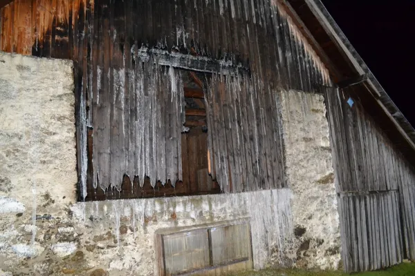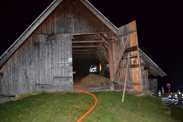 Am ca. 10 km entfernten Einsatzort begann aus bisher ungeklärter Ursache die Holzwand eines alten Stalles zu brennen. Wir meldeten uns nach unseren Eintreffen bei der Einsatzleitung St. Jakob und holten uns unseren Arbeitsauftrag ab. Unser Atemschutztrupp unterstützte bei den Löscharbeiten und kontrollierte auch ein nebenan gebautes Heizwerk auf Glutnester. Nachdem im Heizwerk nichts gefunden werden konnte und der Brand gelöscht war, konnten wir mit den Aufräumarbeiten beginnen. Nachdem alle Geräte versorgt waren, bekamen wir von der ortszuständigen Feuerwehr St. Jakob im Walde etwas zu trinken. Nach ca. 2 Stunden konnten wir uns wieder zurück und einsatzbereit melden.