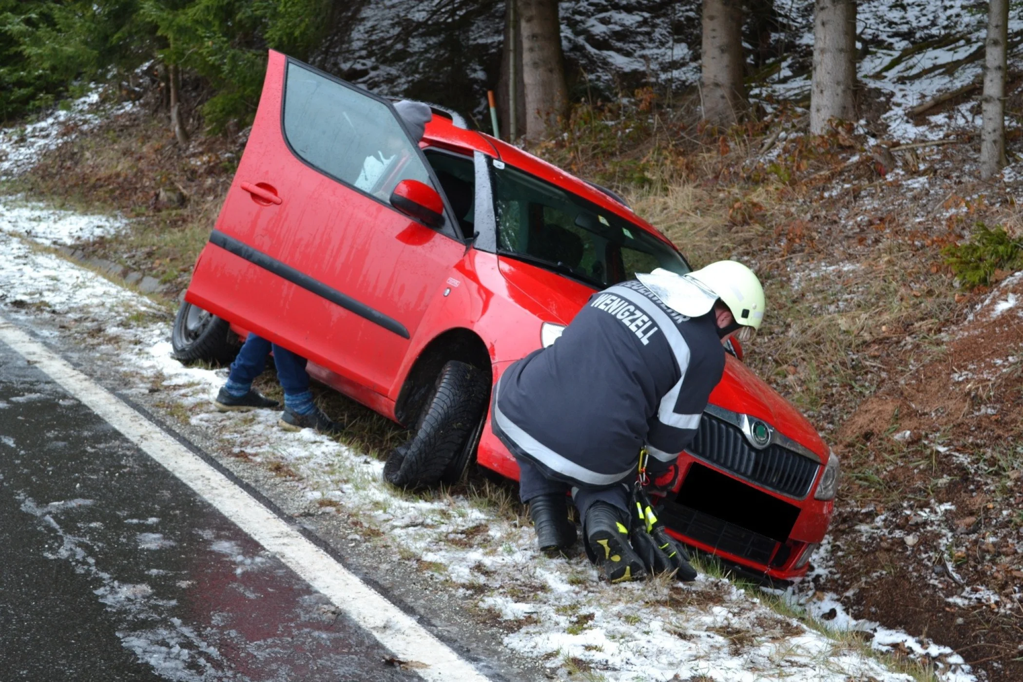 Am ca. 5 km entfernten Einsatzort angekommen, bot sich folgendes Bild: Ein PKW kam aus bisher ungeklärter Ursache von der Straße ab und blieb im angrenzenden Straßengraben hängen. Die Einsatzkräfte der Feuerwehr sicherten sofort die Einsatzstelle ab und sperrten für die Dauer der Fahrzeugbergung die Fahrbahn. Nachdem das Fahrzeug aus dem Graben geborgen war, wurde es sicher abgestellt und es konnte nach ca. 1,5 Stunden die Einsatzbereitschaft wieder hergestellt werden.