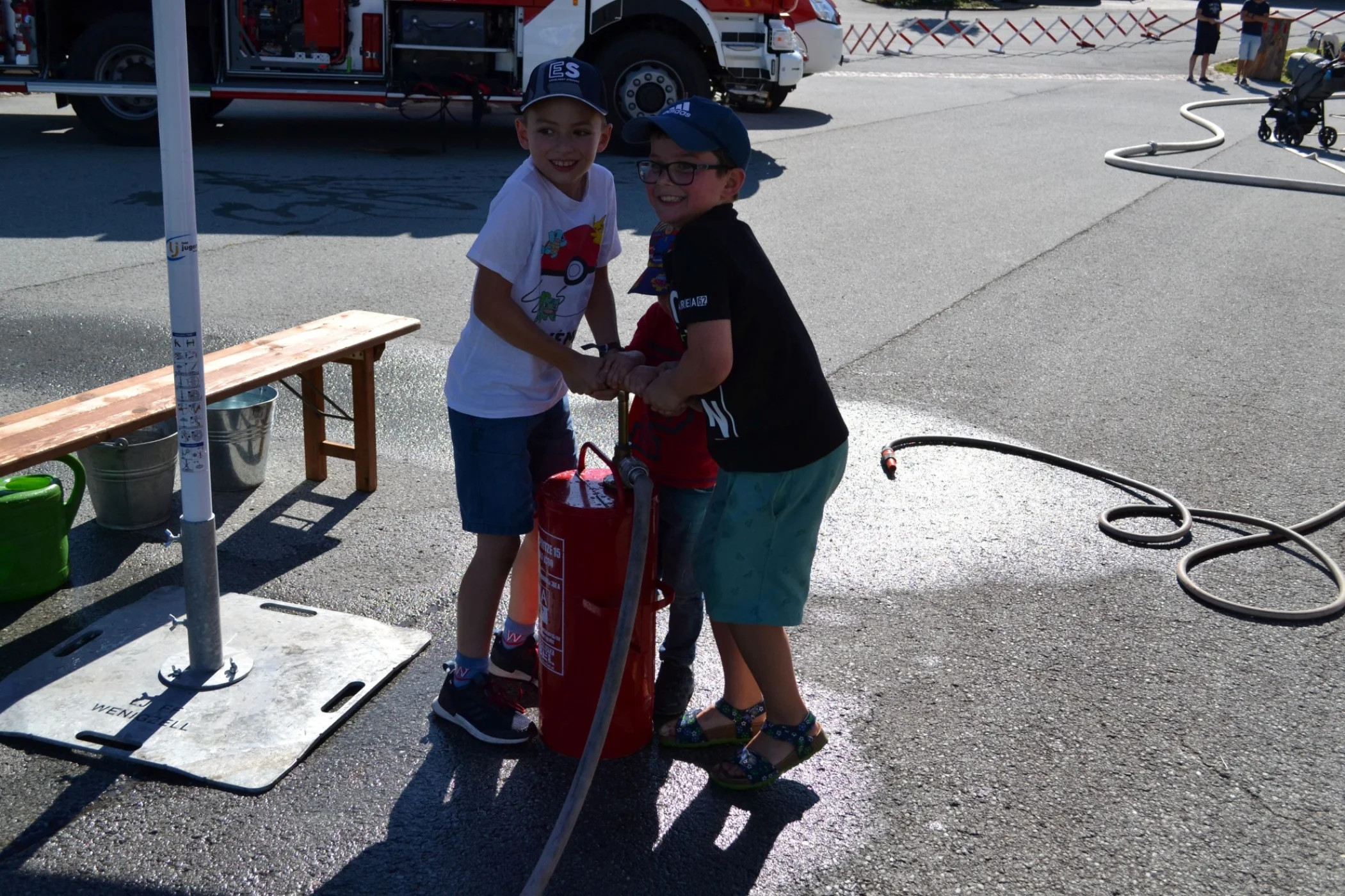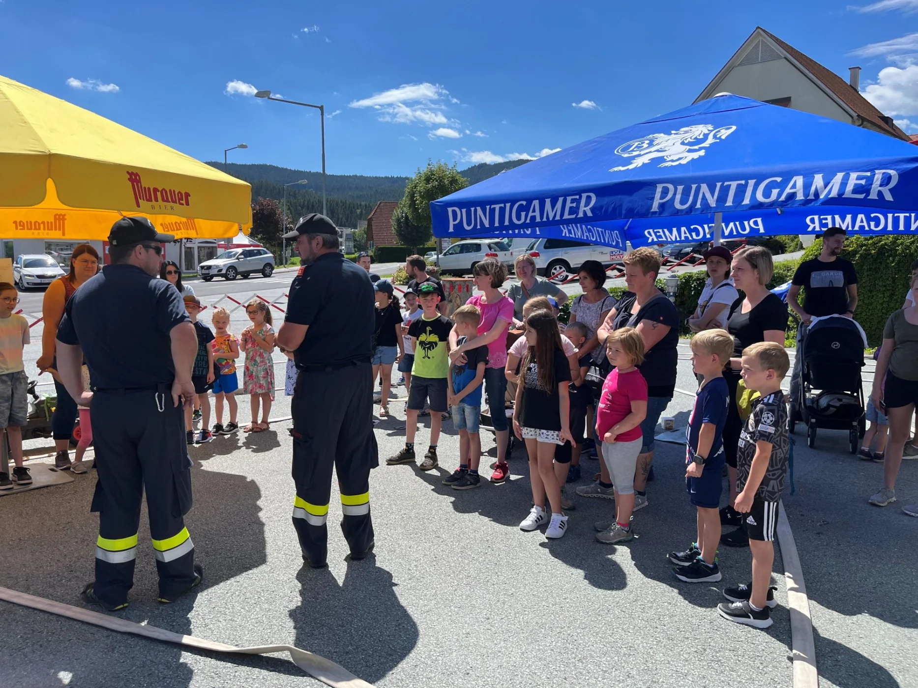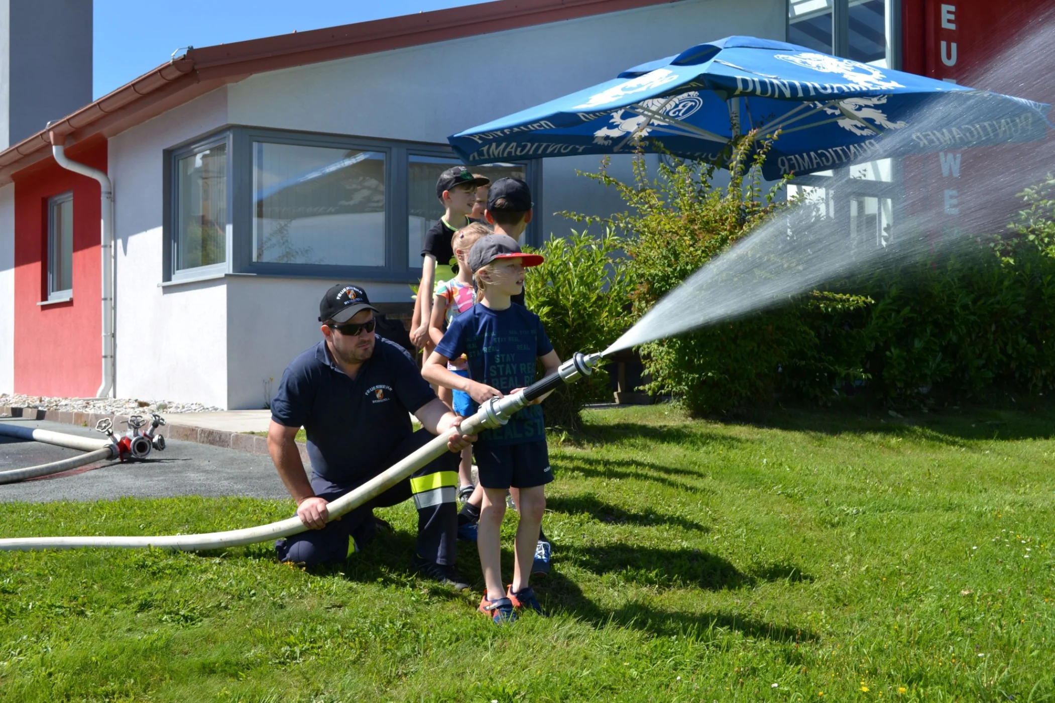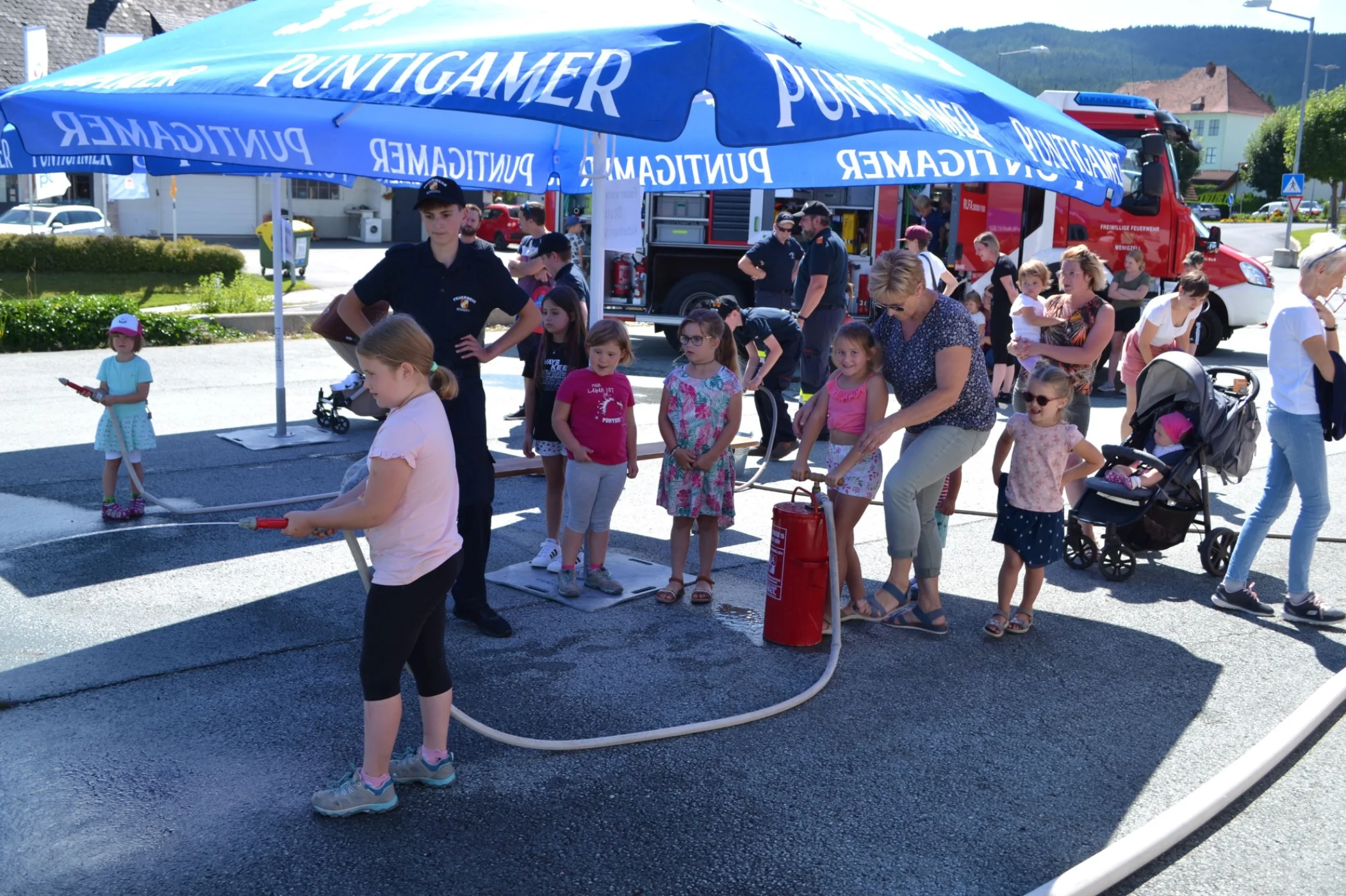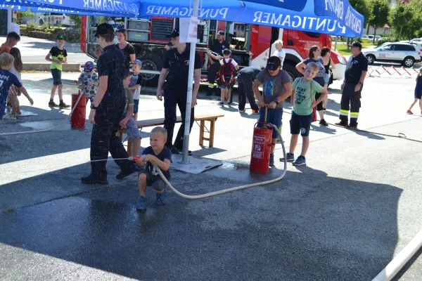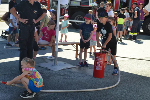 In vielen Stationen konnten die rund 40 Kinder einen spannenden und lustigen Nachmittag erleben. Ein besonderes Highlight war sicher die gesamte Waldbrandausrüstung, mit dieser konnte gefahrlos für die richtige Abkühlung an einen heißen Tag gesorgt werden. Auch die "Entenrettung" aus dem Falttank bereitete den Kindern viel Freude. Doch es gab noch viel mehr zu erleben. So konnte mit den Kübelspritzen aus der Jugendbewerbsbahn geübt, mittels Funkgeräte eine Schnitzeljagd gemacht und alle Fahrzeuge mit Ausrüstung genauestens besichtigt werden. Zum Abschluss gab es für alle eine kleine Jause und Getränke dazu.