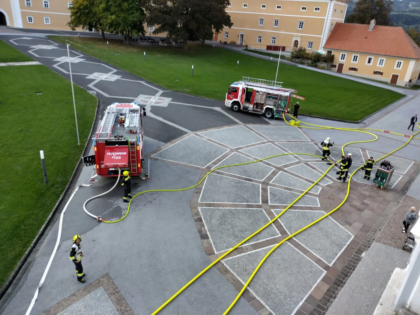 Am Samstag den 14.10.2023 wurde die FF-Wenigzell um 17:00 Uhr von der FF-Vorau zu einer Übung im Stift Vorau eingeladen. Unverzüglich nach der Alarmierung machten sich das RLFA 2000-100 und das LFA auf dem Weg nach Vorau.