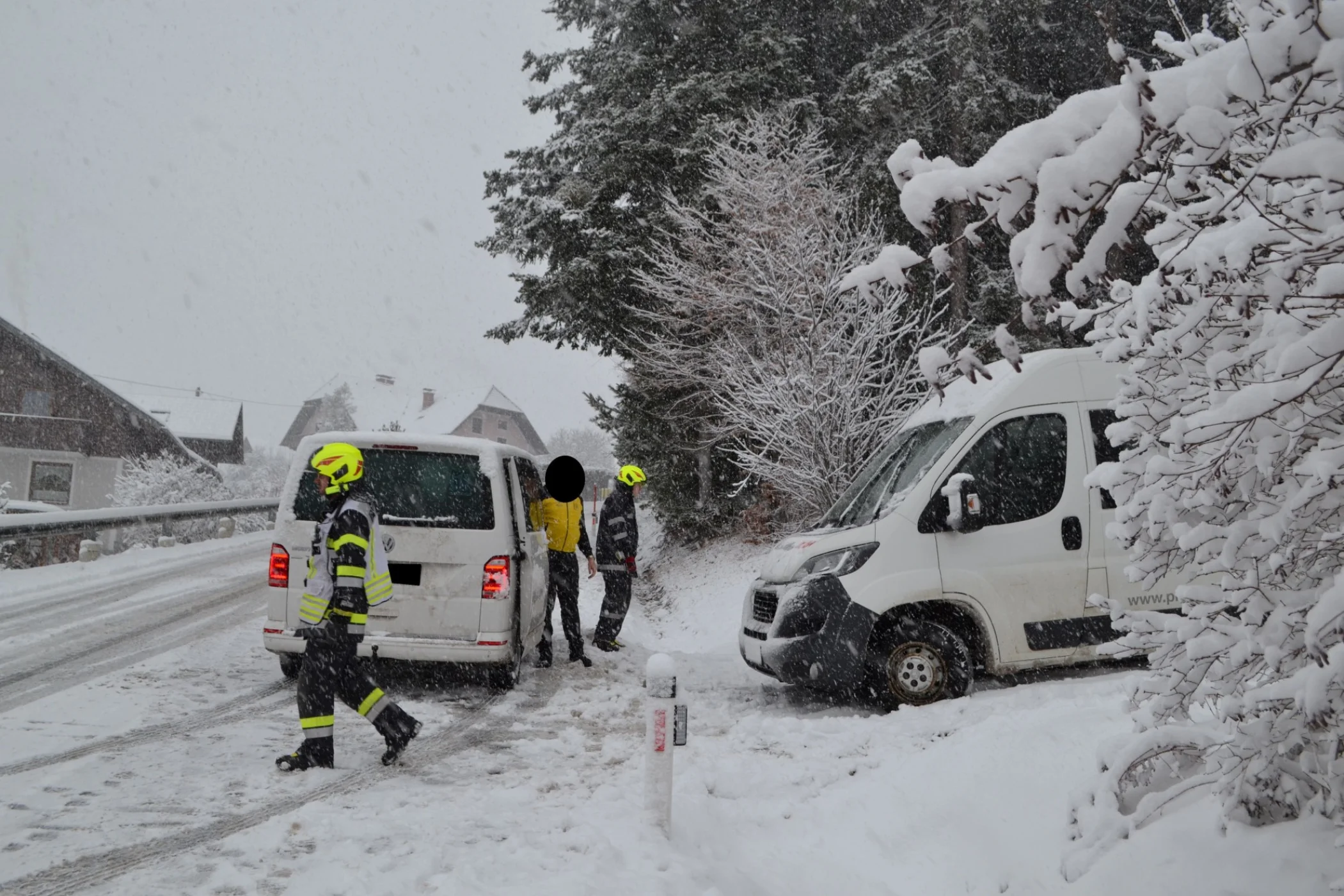 Zum ersten Einsatz wurde die Feuerwehr Wenigzell um 09:14 Uhr mittels stillem Alarm gerufen, der Einsatzgrund waren zwei hängengebliebene Kleinbusse auf der L-408 Höhe Ohrenhofer. Unverzüglich rückten das MTFA, RLFA 2000-100 und LFA zum ca. 3 km entfernten Einsatzort aus. Nachdem der Einsatzort abgesichert war, konnte mit der Fahrzeugbergung begonnen werden. Nach ungefähr einer Stunde konnte der erste Einsatz abgeschlossen werden und die Einsatzbereitschaft wieder hergestellt werden.