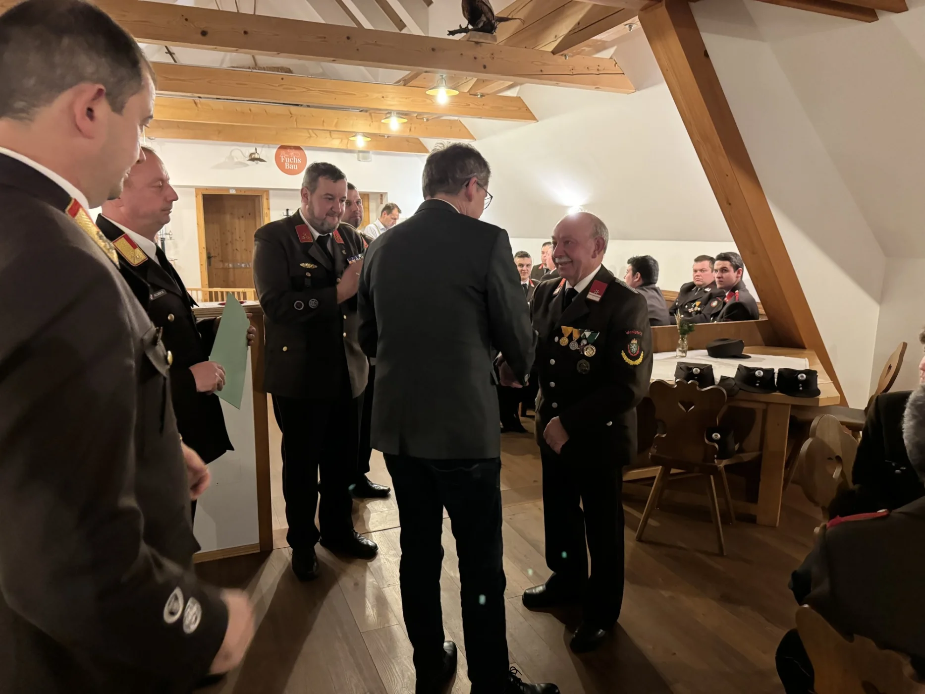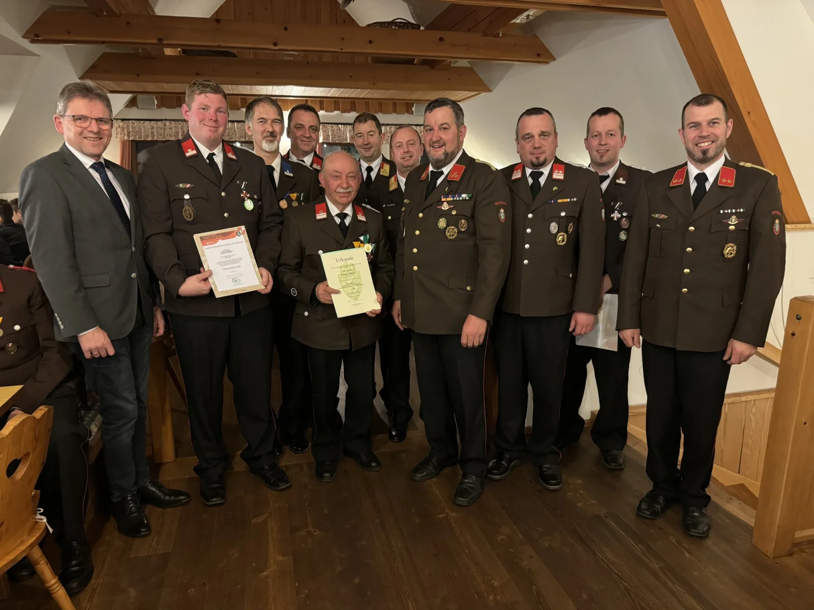 EBM Ernest Almer wurde für 60-jährige verdienstvolle Tätigkeit auf dem Gebiete des Feuerwehr- und Rettungswesens geehrt.