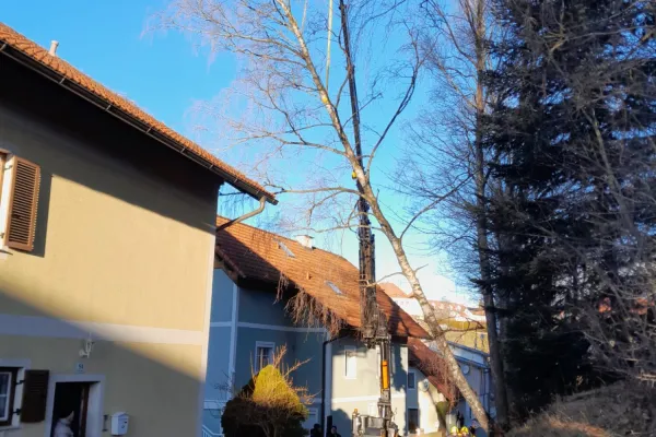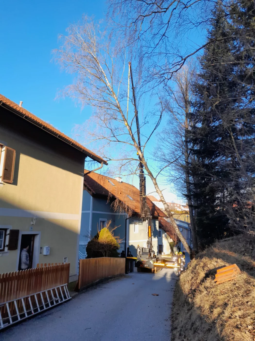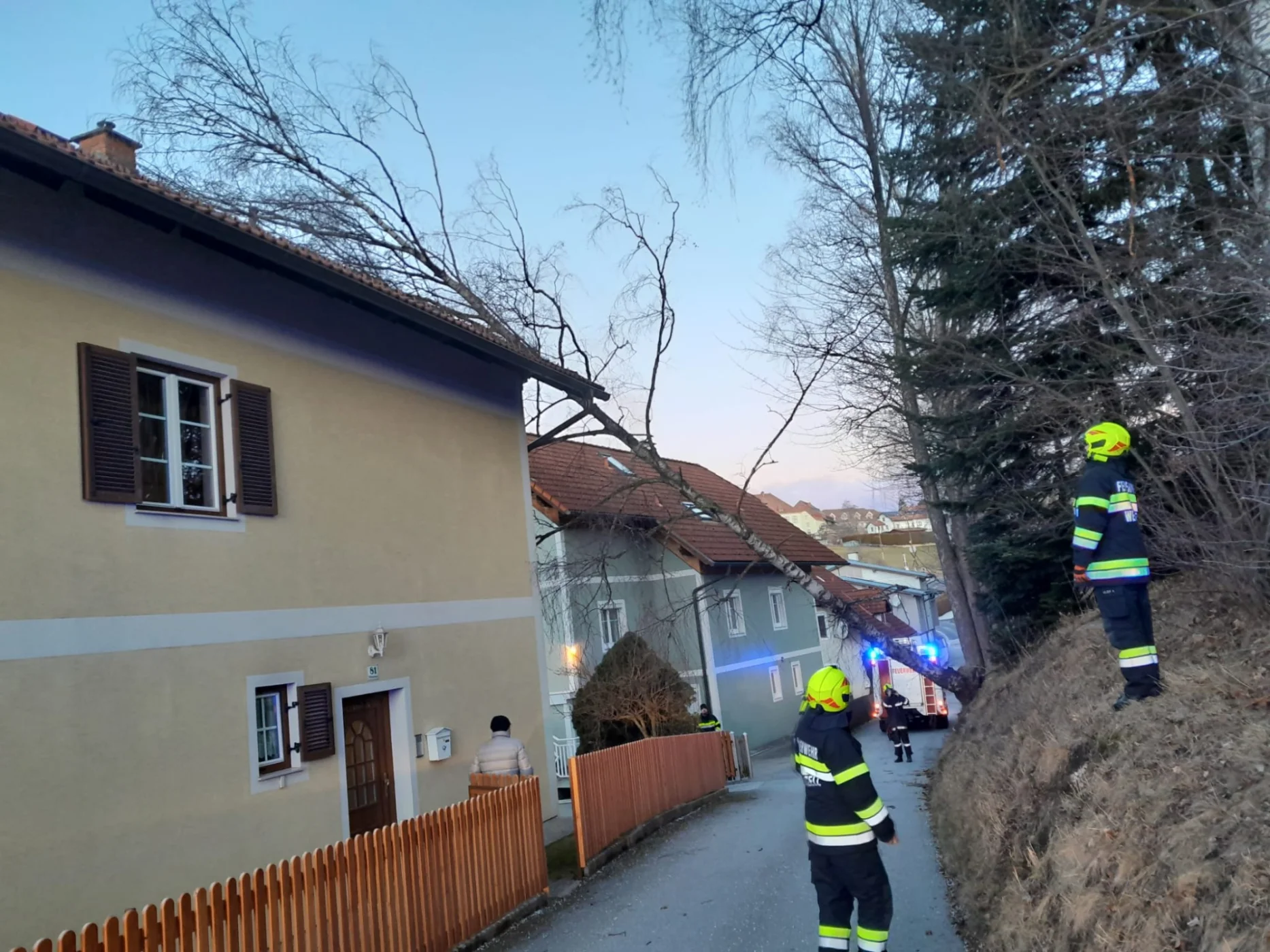 Am Samstag dem 27. Jänner 2024 wurden wir kurz vor 07:00 Uhr mittels stiller Alarmierung zu einer Baumbergung gerufen. Sofort rückten wir mit LFA und RLF-A zur Unfallstelle aus. Ein Baum wurde aufgrund des heftigen Windes entwurzelt und krachte auf ein Hausdach.