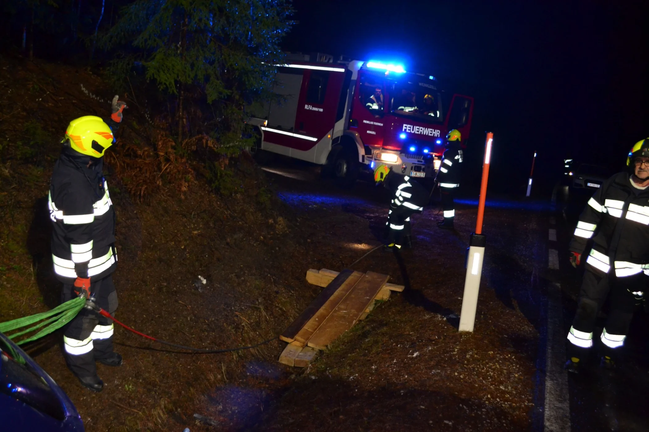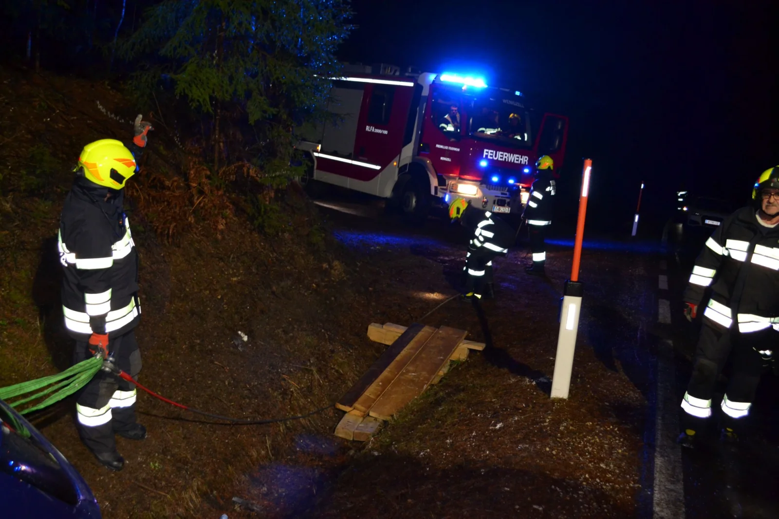Am Einsatzort angekommen startete der Einsatzleiter sofort mit der Lageerkundung und ließ die Unfallstelle absichern. Die Lageerkundung ergab folgendes Bild, aus bisher ungeklärter Ursache kam ein PKW von der Straße ab und blieb im Straßengraben hängen. Die Bergung des verunfallten PKWs erfolgte mit der Seilwinde des RLFAs, als diese abgeschlossen war, konnte der PKW gesichert abgestellt werden. Danach wurde der Einsatzort gereinigt und es konnte nach ca. 1,5 Stunden die Einsatzbereitschaft gemeldet werden.