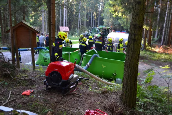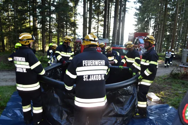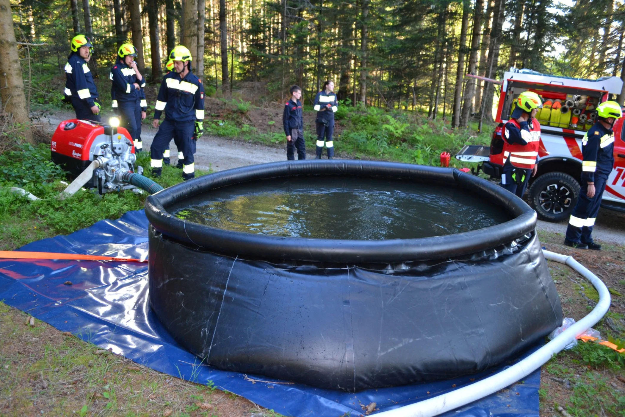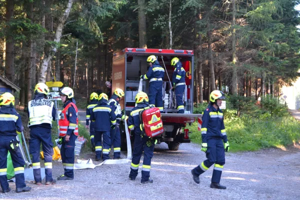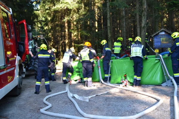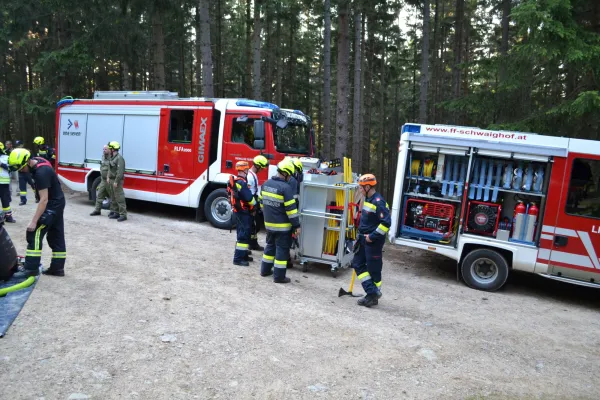 Als Übungsannahme galt es, einen Waldbrand nahe der L449 im Bereich "Toter Mann" zu bekämpfen. Die ortszuständige Feuerwehr Wenigzell wurde gemeinsam mit der Feuerwehr Strallegg als erstes zum Einsatzort gerufen, dort angekommen wurde unverzüglich die Einsatzleitung aufgebaut und alles für die Ankunft der beiden Waldbrandzüge vorbereitet. Die Waldbrandzüge des Abschnitt 3 und Abschnitt 5 trafen um 18:30 Uhr beim Sammelplatz am Schiliftparkplatz ein, dort wurden sie von einem Lotsen abgeholt und zum Einsatzort gebracht. Die Wasserversorgung der Züge wurde mittels Pendelverkehrs und den Einsatz von zwei 5000 Liter Faltbehälter hergestellt, von diesen wurden zwei Löschwasserleitungen mit einer Länge von je 300 Meter aufgebaut, welche dann in die Faltbehälter der Waldbrandzüge pumpten. Der Pendelverkehr wurde vom RLFA 2000-100 Wenigzell, TLFA 4000 Strallegg und zwei Traktoren mit Jauchenfässern durchgeführt. Die beiden Waldbrandzüge führten die Brandbekämpfung mittels D-Strahlrohren und Waldbrandrucksäcken durch, wobei auch das Öffnen des Waldbodens mit Spezialwerkzeugen geübt wurde. Nachdem Brand-Aus gegeben wurde, starteten um ca. 20:30 Uhr die Aufräumarbeiten. Nach Ende dieser konnte mit der Schlusskundgebung beim Toten Mann begonnen werden.