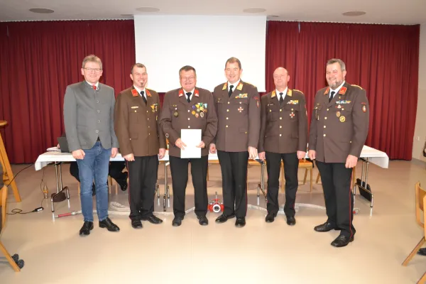 HFM Thomas Grabner, HFM Franz Pittermann, OBI Bernhard Turnsek, BM Christoph Köberl und HFM Johann Kroisleitner wurden für 25-jährige verdienstvolle Tätigkeit auf dem Gebiete des Feuerwehr- und Rettungswesens geehrt.