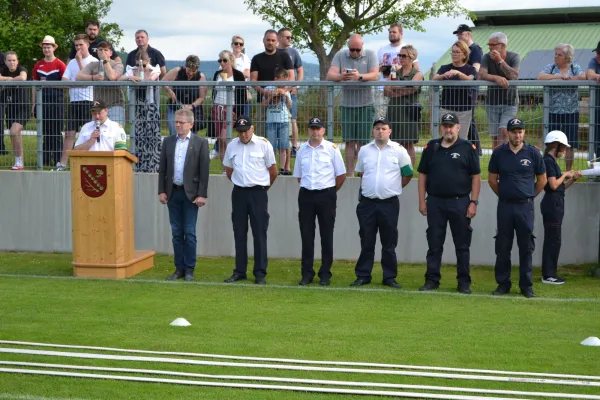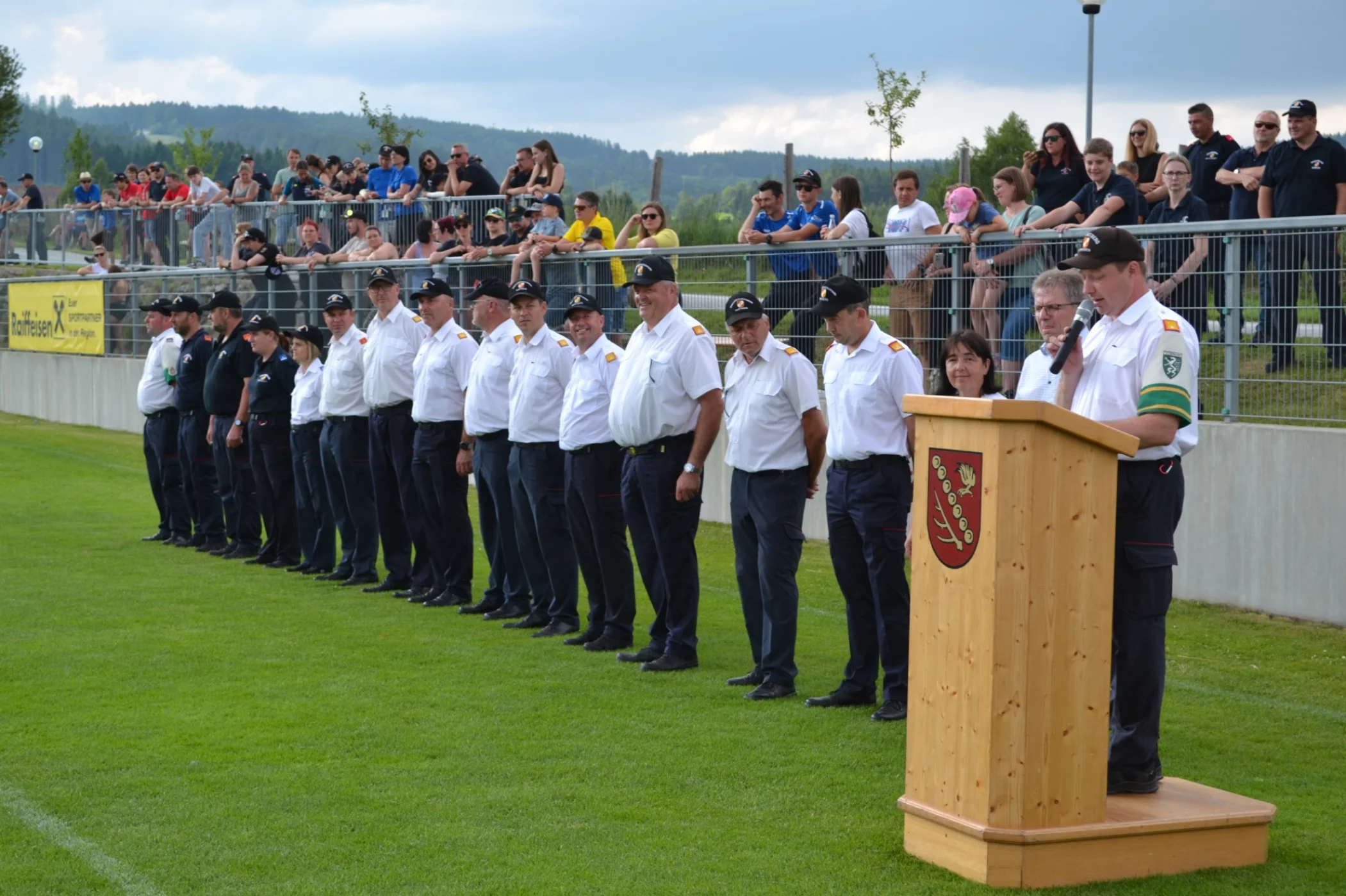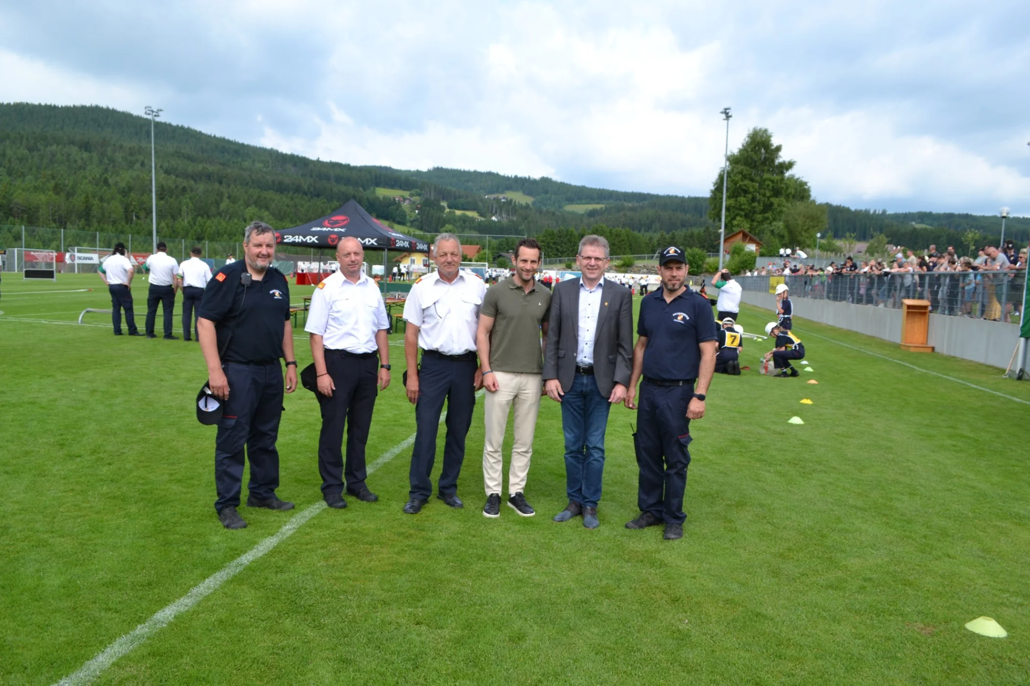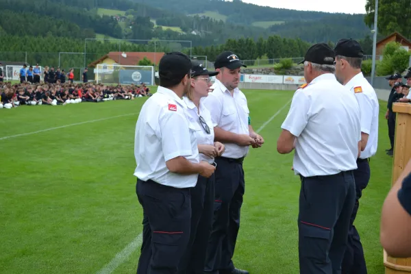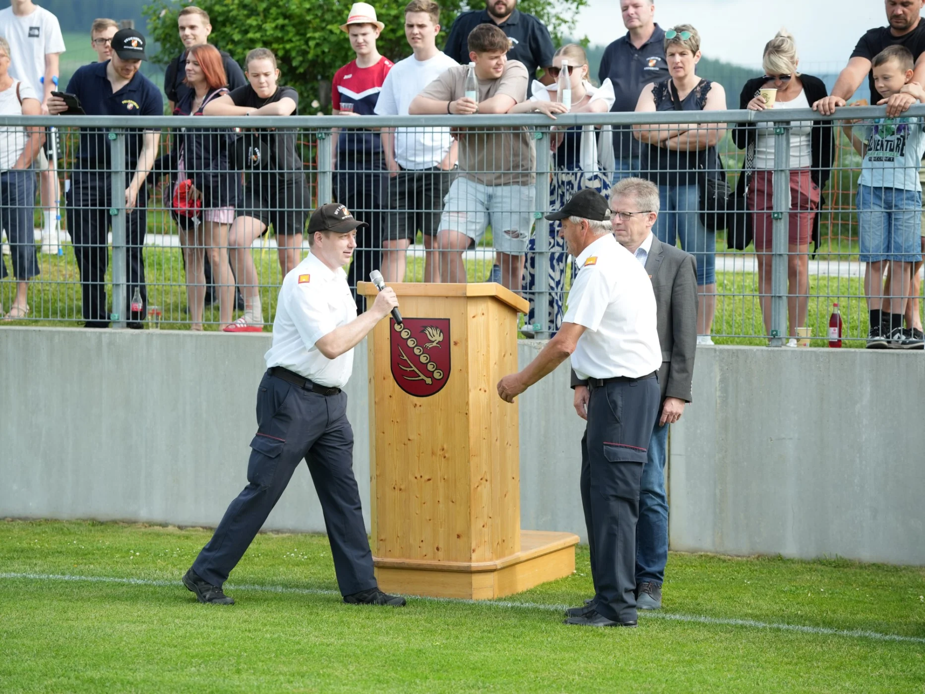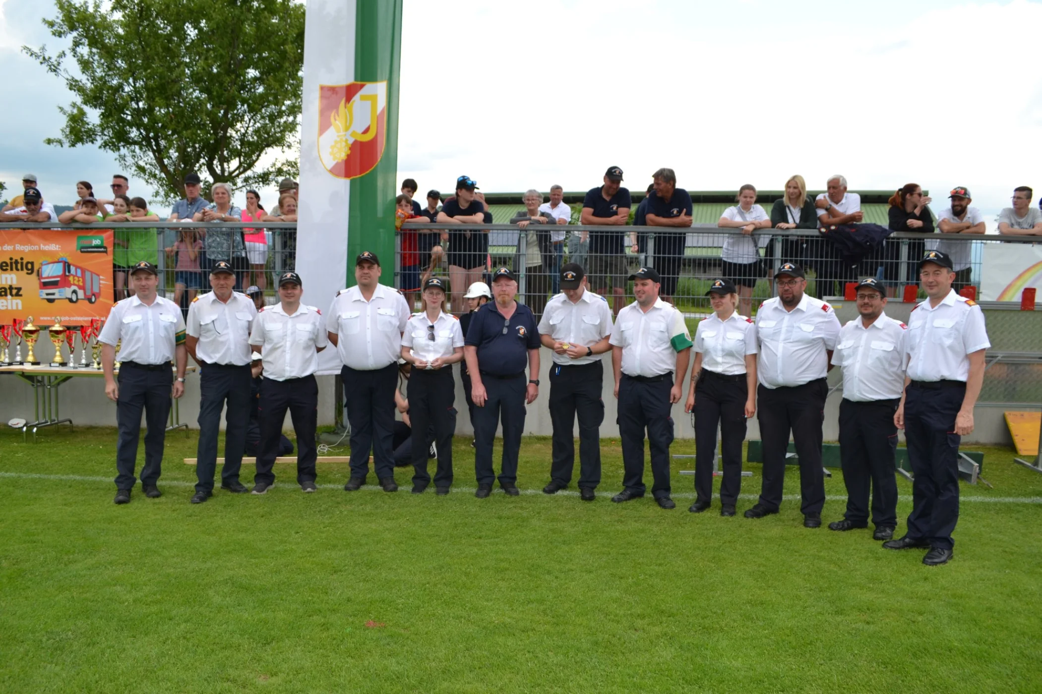 Höhepunkt des Bewerbstages bildete die Siegerehrung am Sportplatz, welche pünktlich um 16:00 Uhr begonnen wurde. Zahlreiche Ehrengäste folgten der Einladung um dieser Veranstaltung einen würdigen Rahmen zu verleihen.