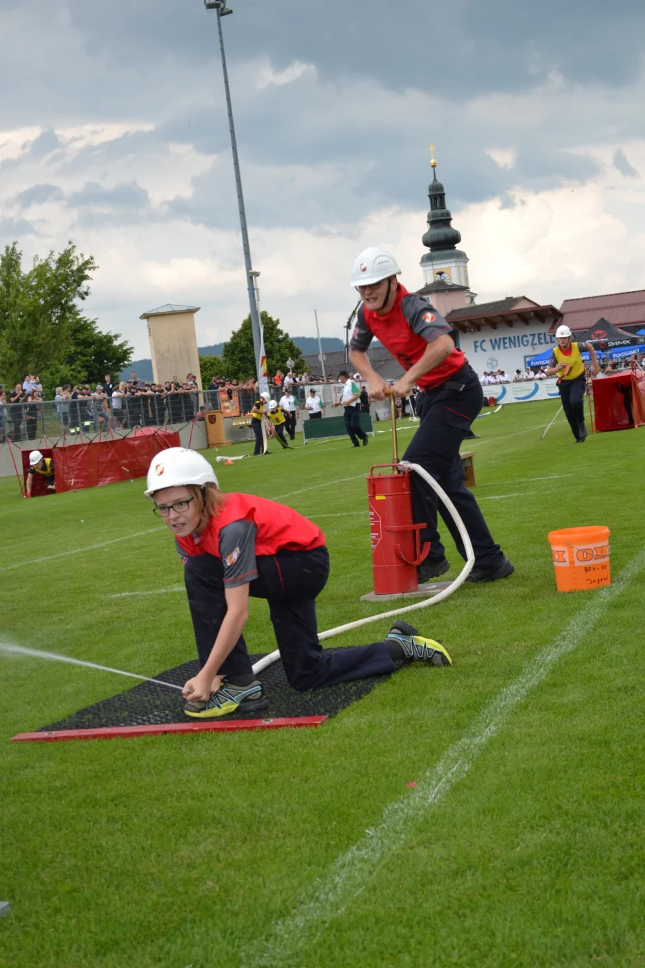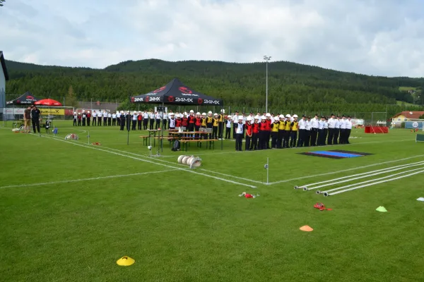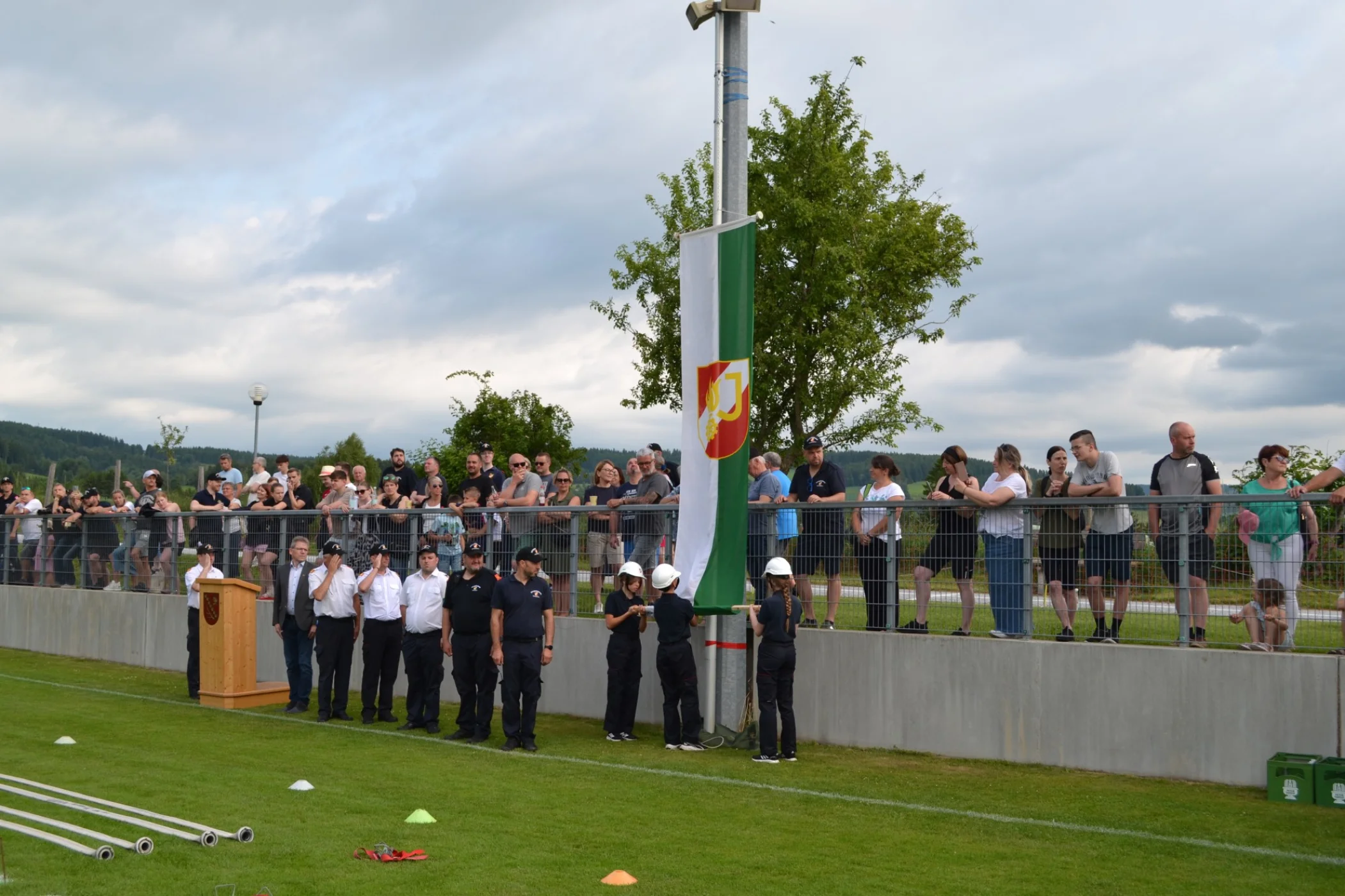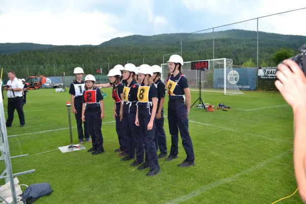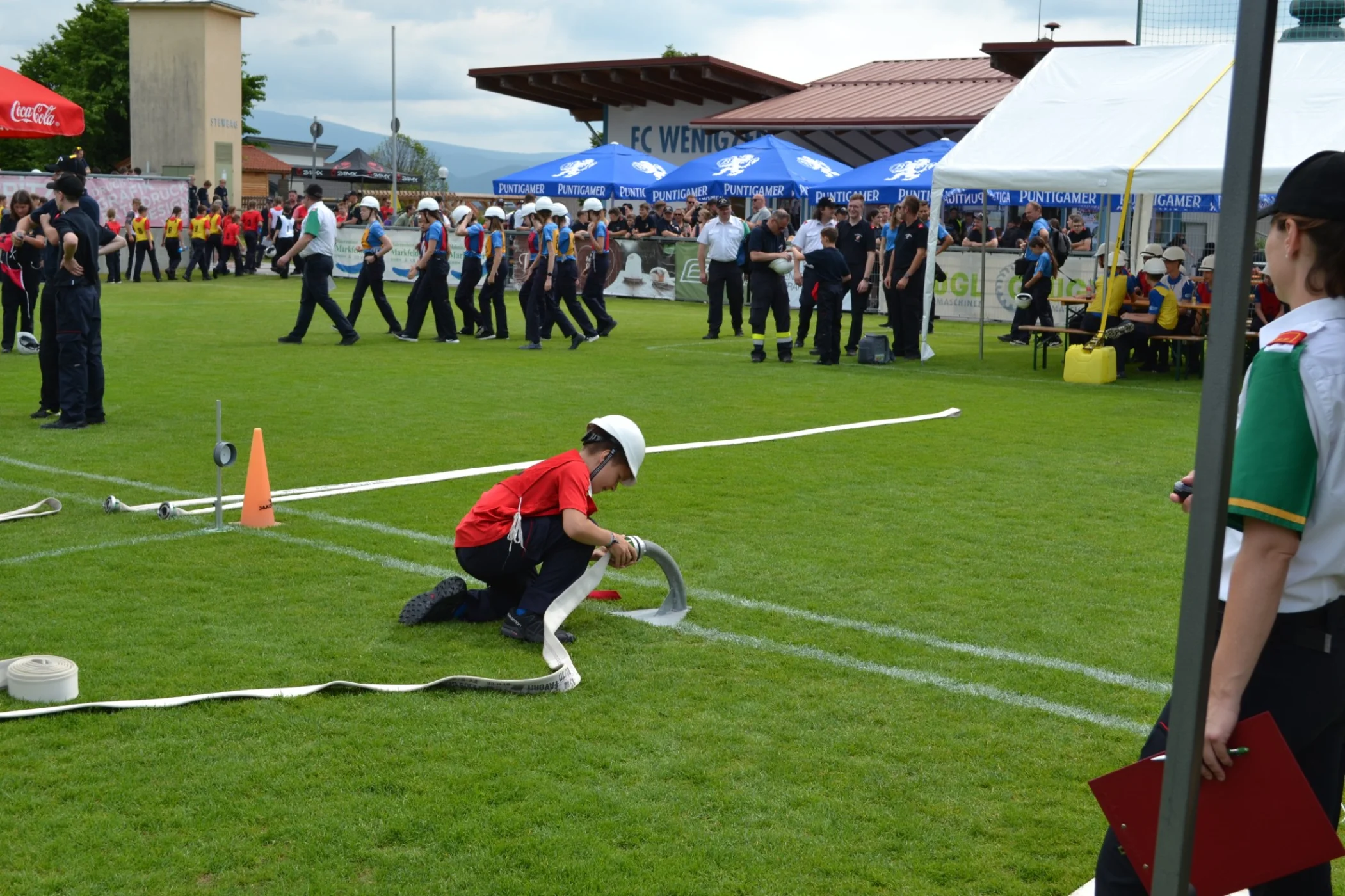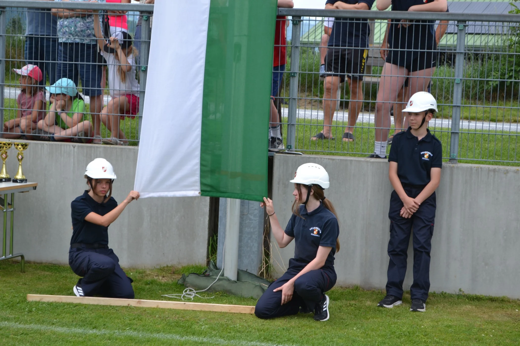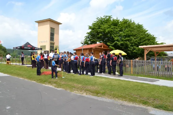 Der Bewerb konnte vom Bewerbsleiter ABI Jürgen Stark und BR Johann Hierzer eröffnet werden. Das Aufziehen der Bewerbsfahne wurde vom Musikverein Wenigzell musikalisch begleitet. Die anwesenden Ehrengäste, BGM Ing. Herbert Berger, Klubobmann Mag. Lukas Schnitzer und ABI Markus Allmer konnten sich bei den ersten Durchgängen des Bewerbs ein Bild vom Können der Feuerwehrjugend ein Bild machen.